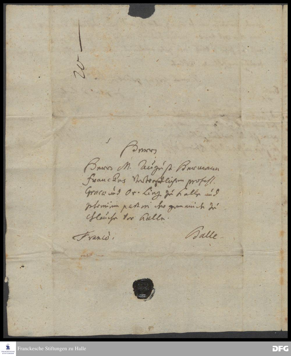 Brief von Philipp Jakob Spener an August Hermann Francke.