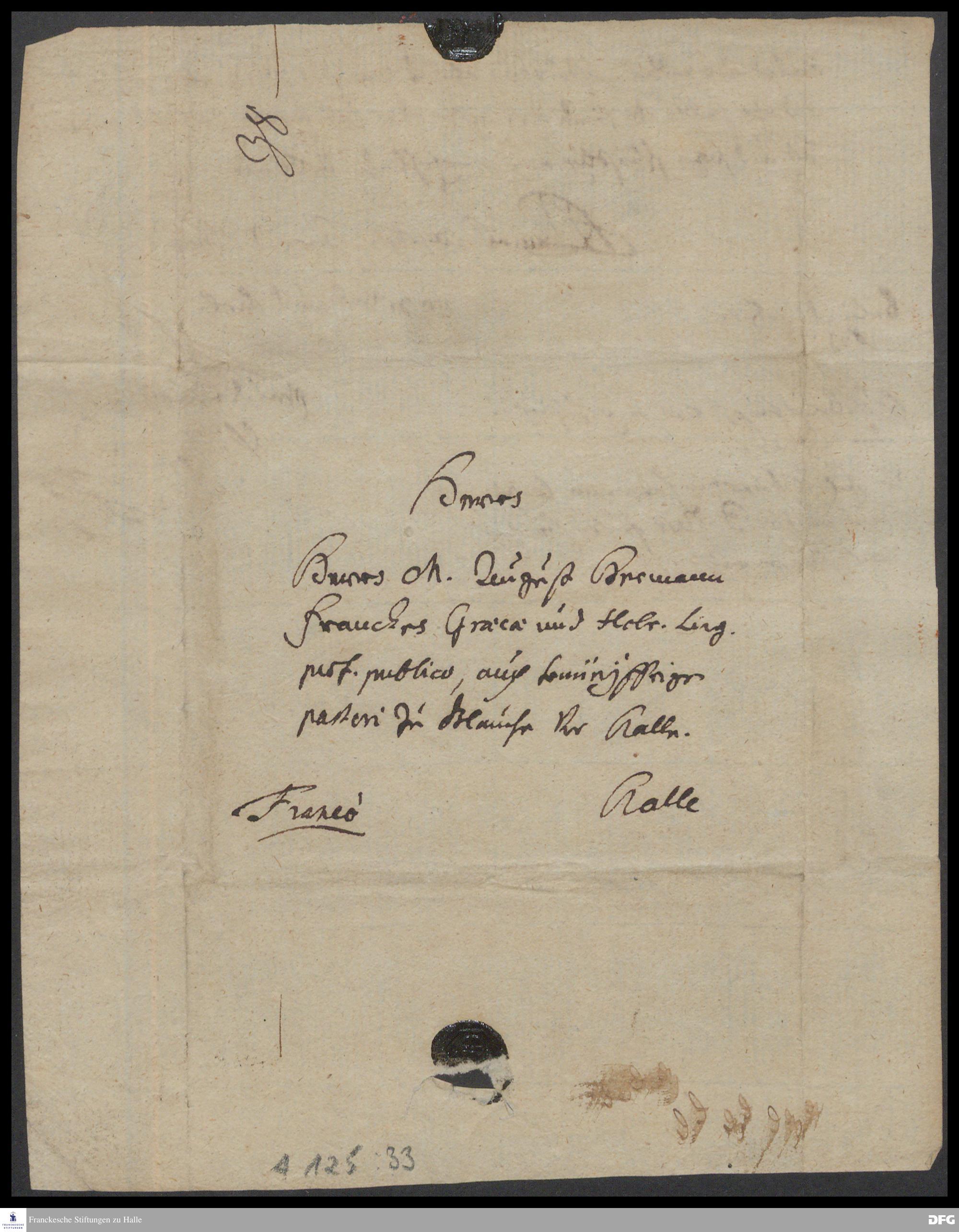 Brief von Philipp Jakob Spener an August Hermann Francke.