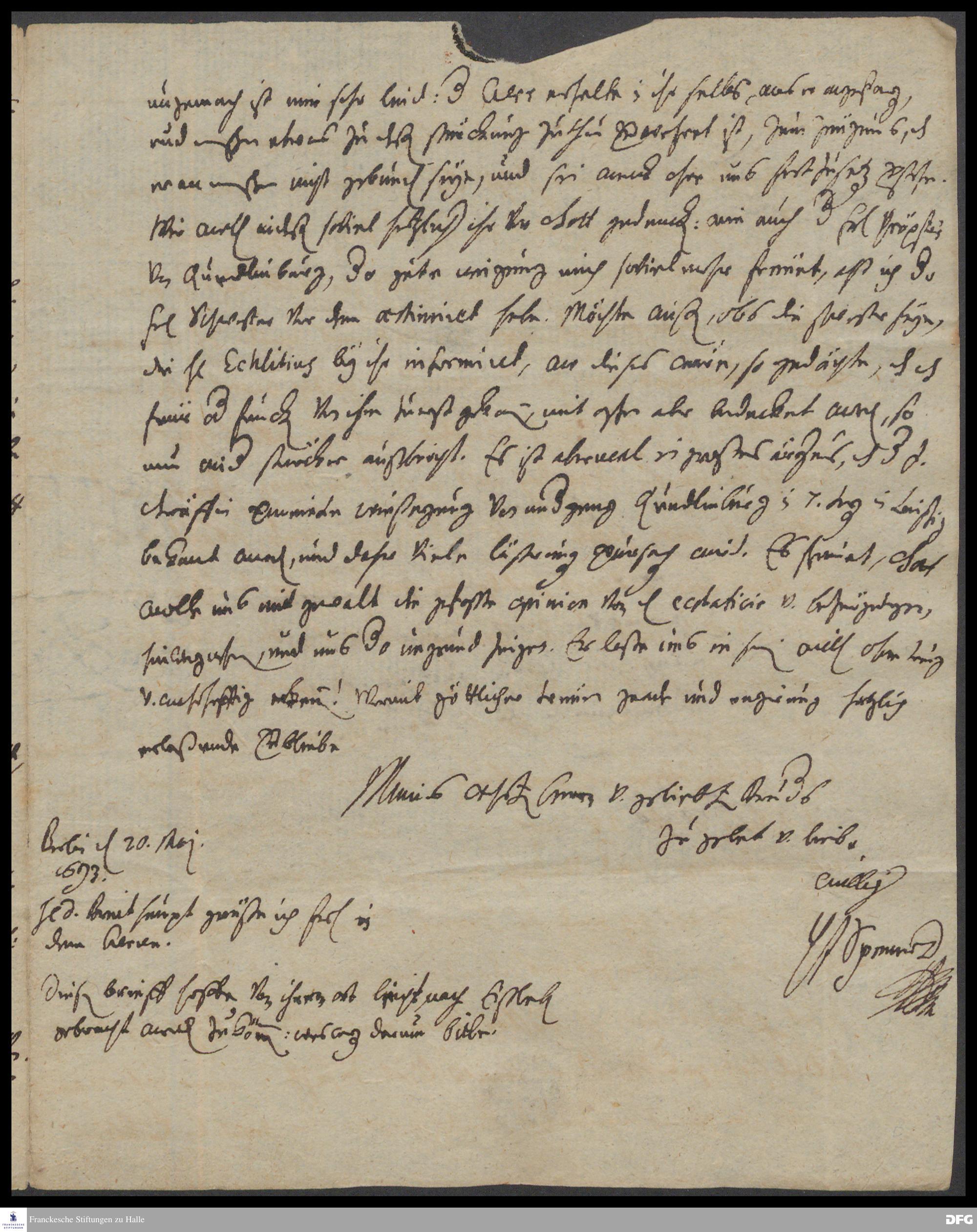 Brief von Philipp Jakob Spener an August Hermann Francke.