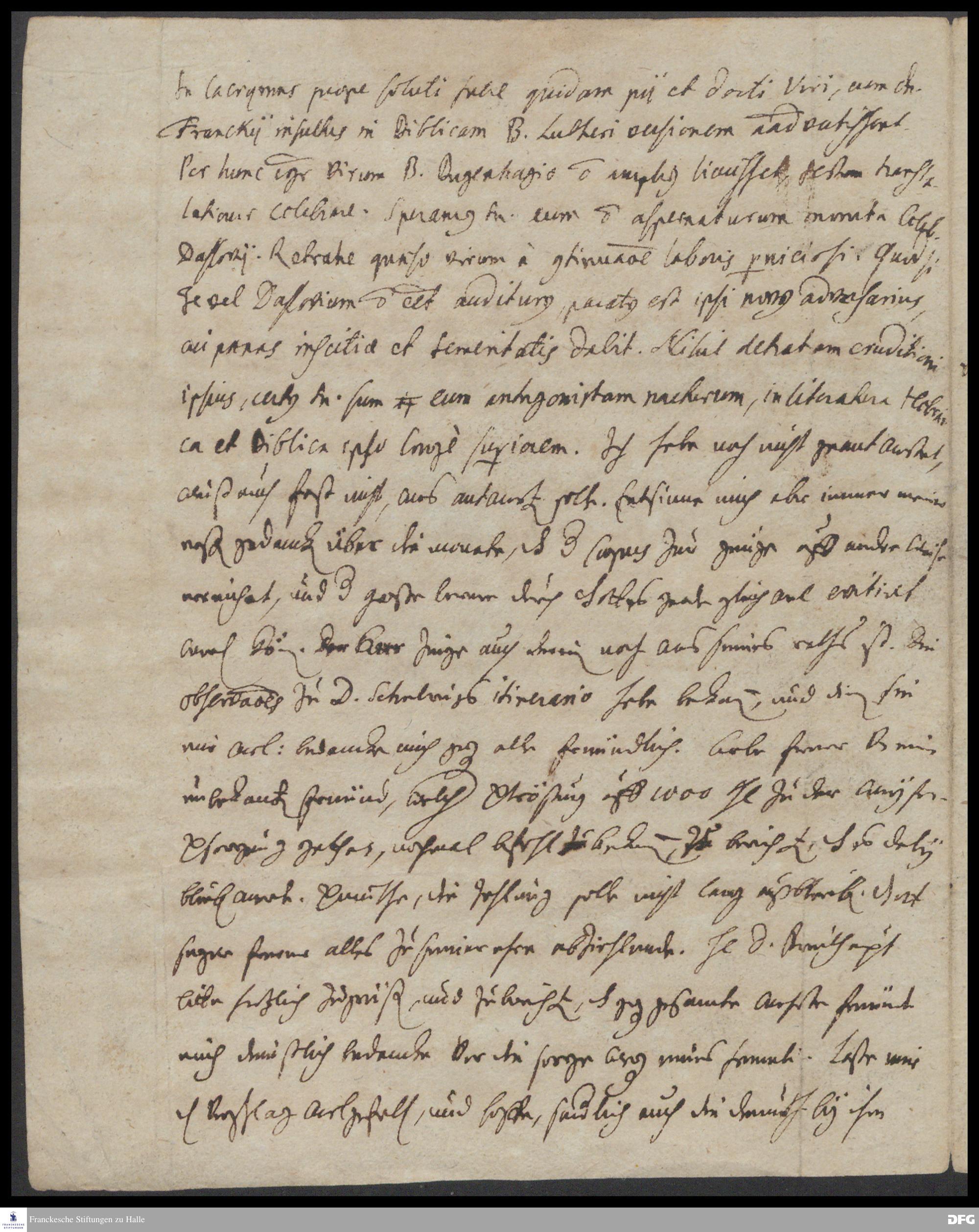 Brief von Philipp Jakob Spener an August Hermann Francke.