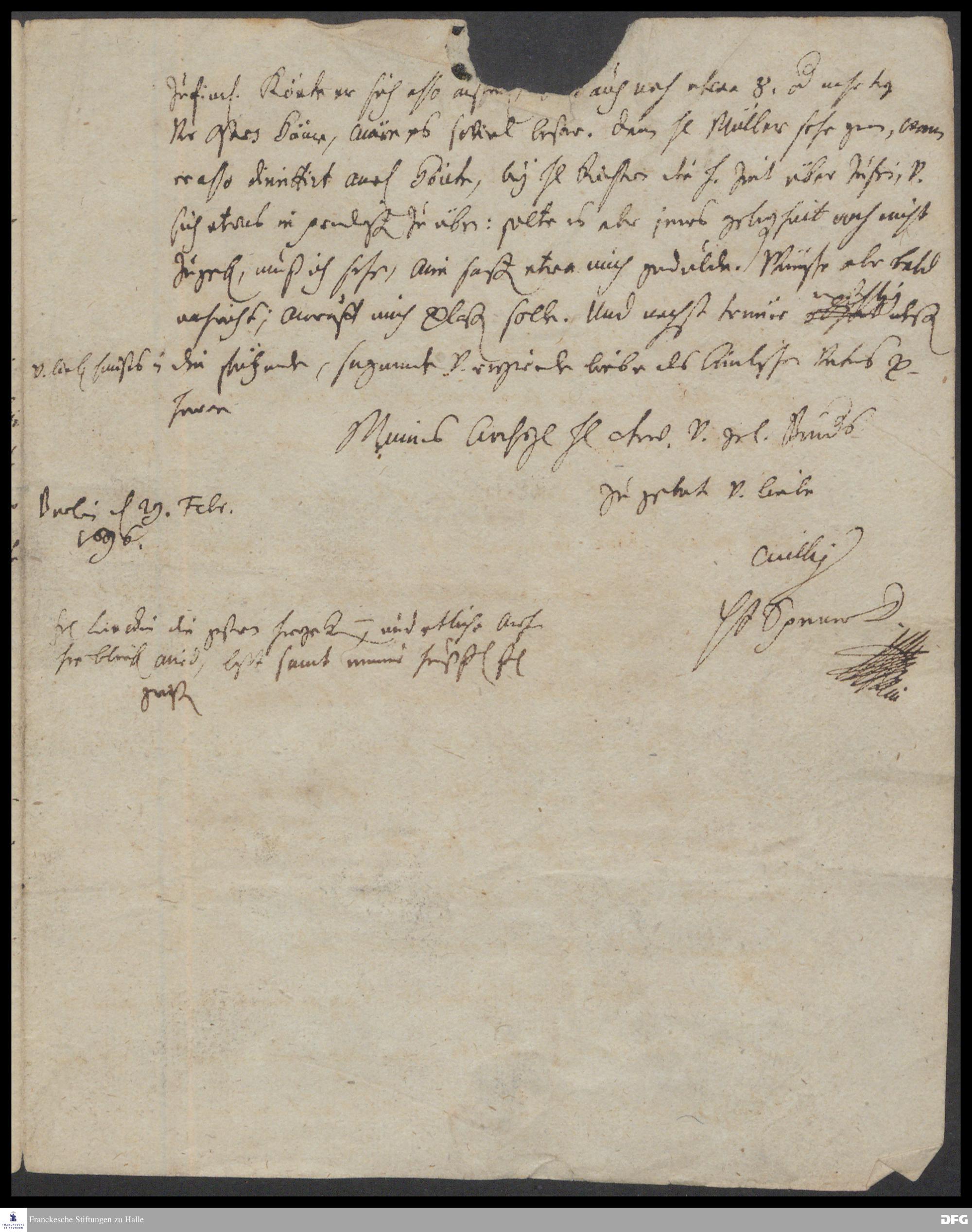 Brief von Philipp Jakob Spener an August Hermann Francke.