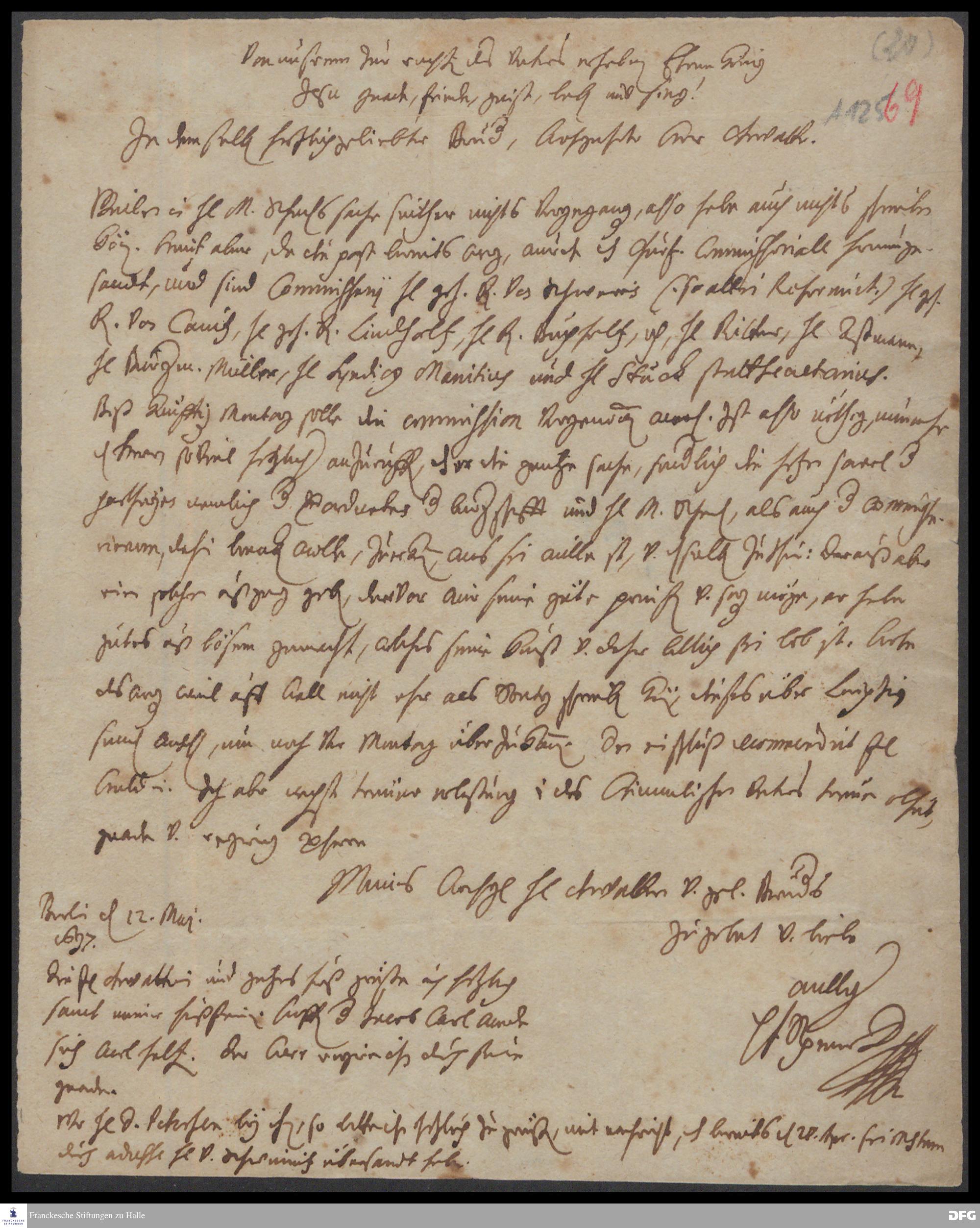 Brief von Philipp Jakob Spener an August Hermann Francke.