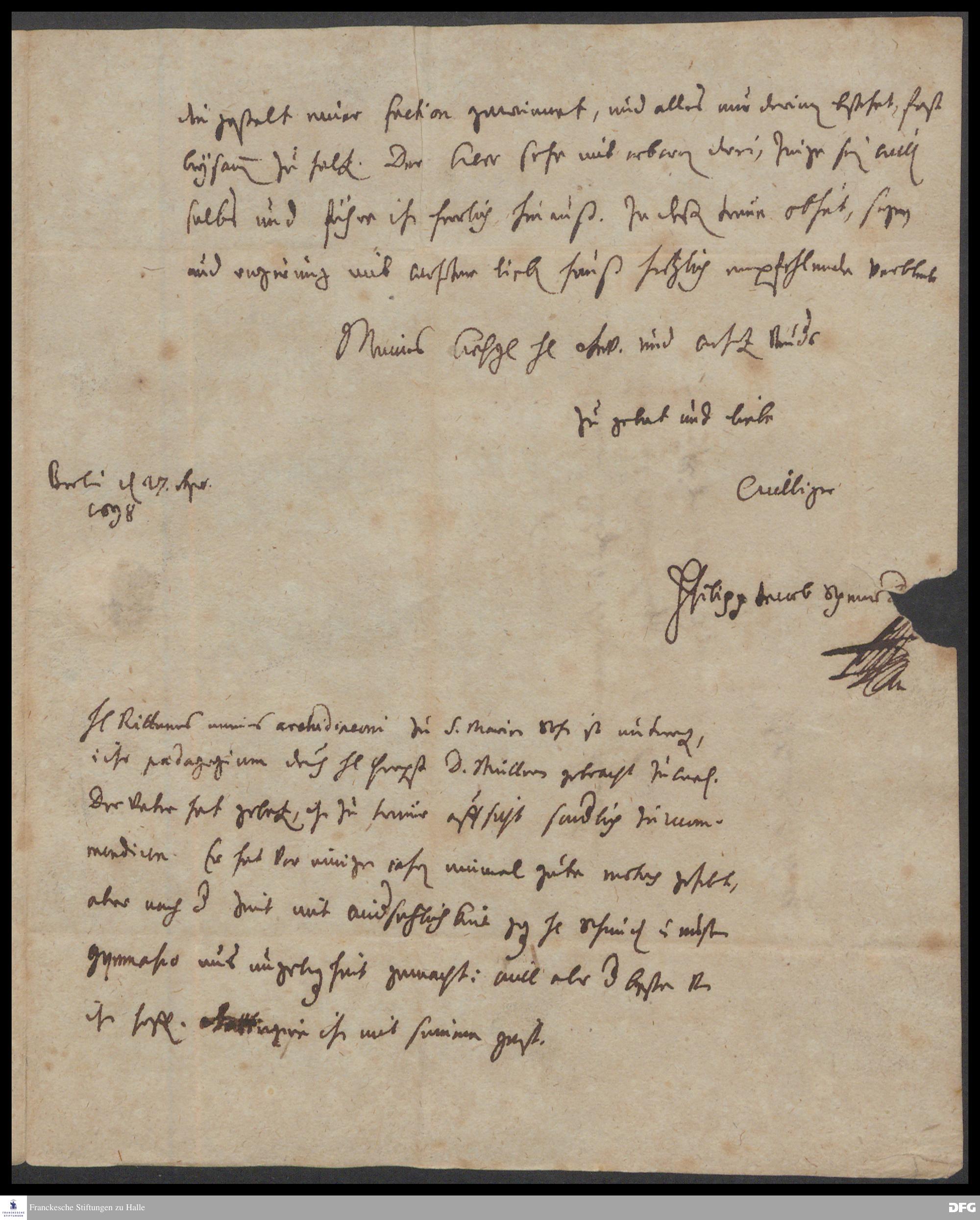 Brief von Philipp Jakob Spener an August Hermann Francke.