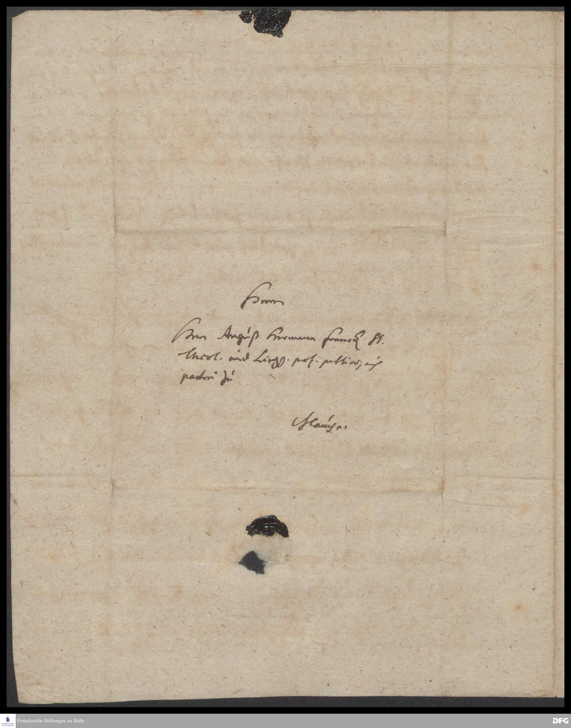 Brief von Philipp Jakob Spener an August Hermann Francke.