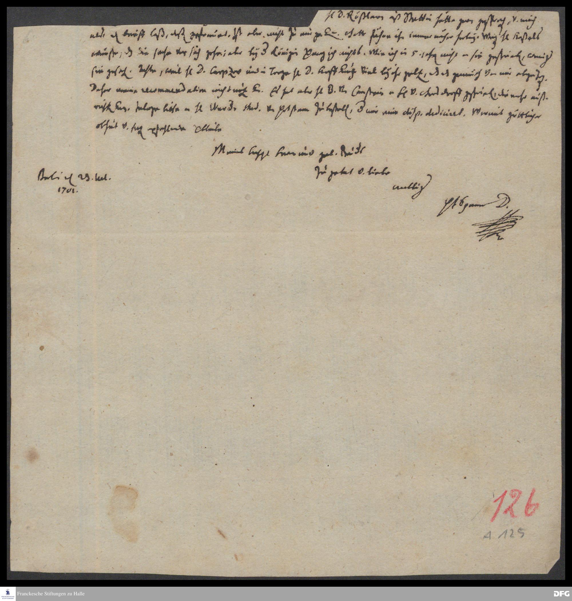 Brief von Philipp Jakob Spener an August Hermann Francke.