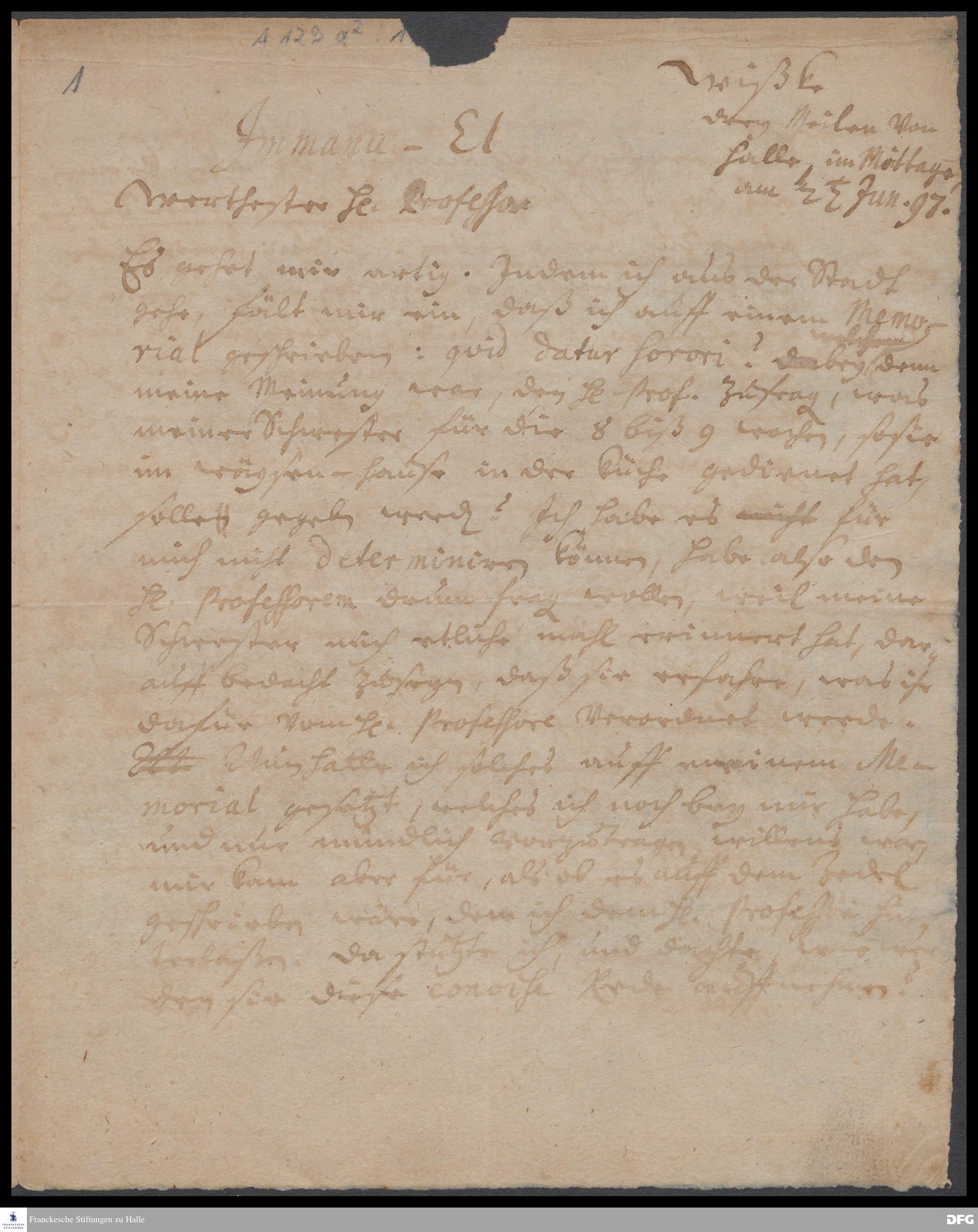 Brief von Georg Heinrich Neubauer an August Hermann Francke.