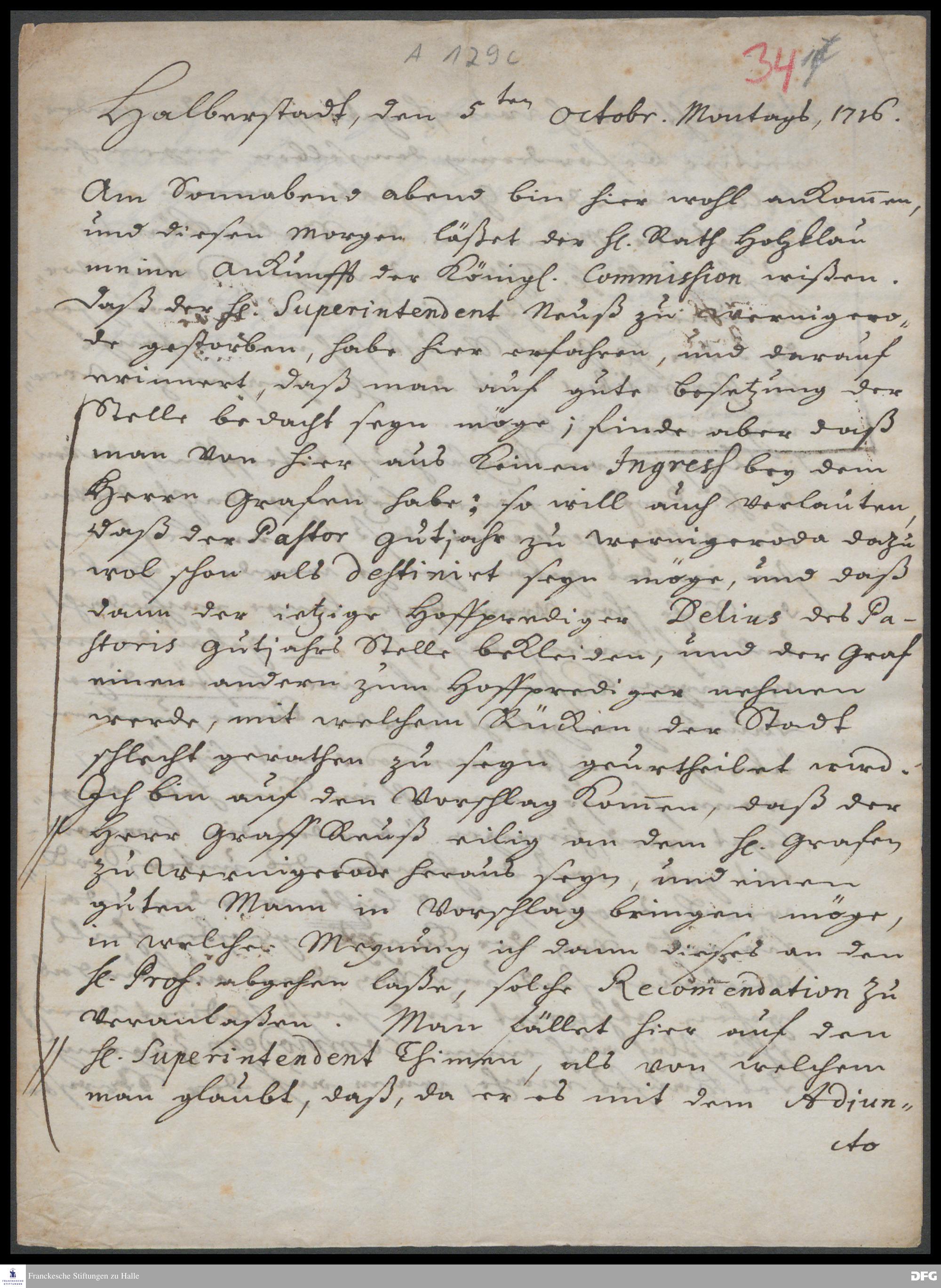 Brief von Georg Heinrich Neubauer an August Hermann Francke.