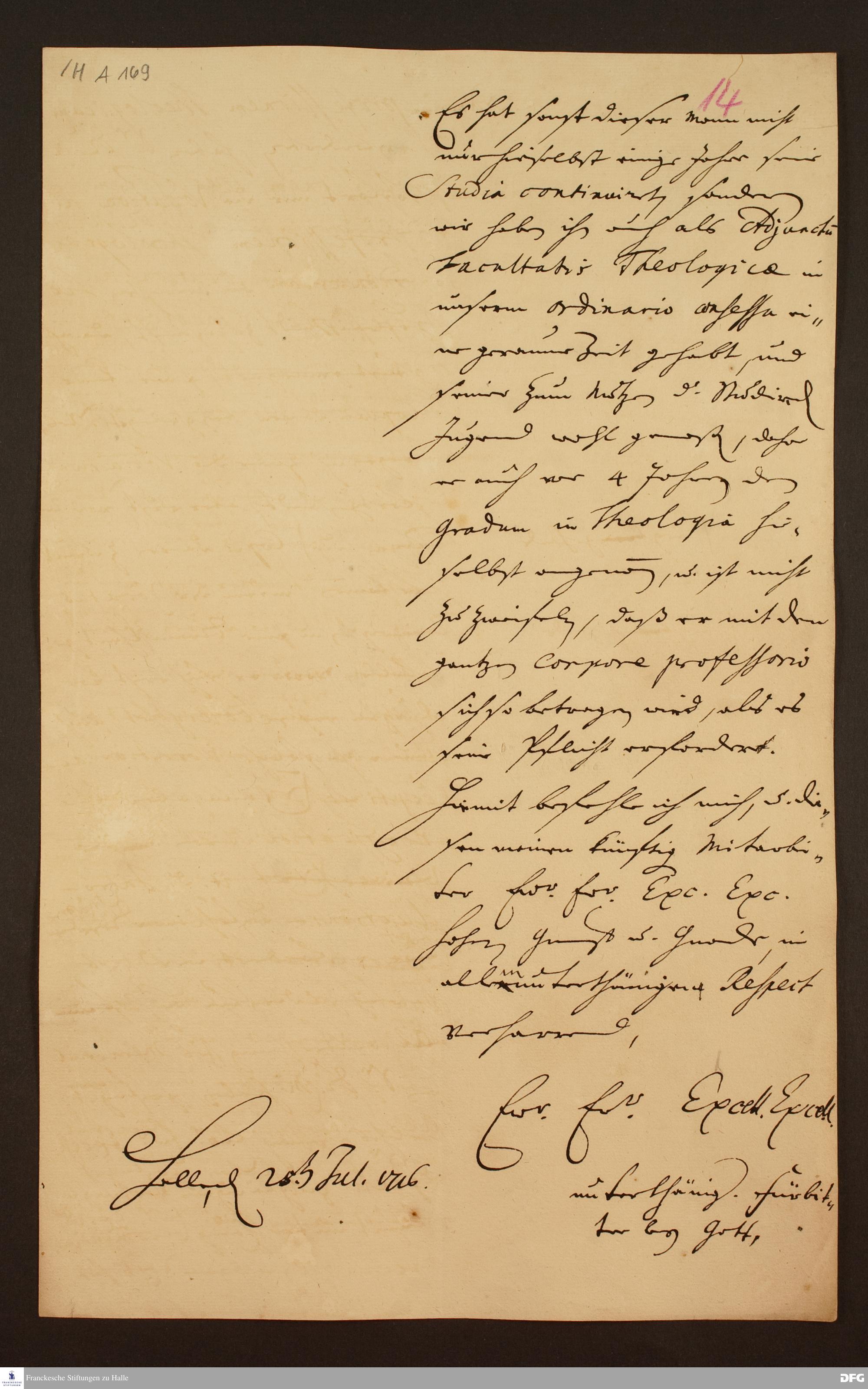 Brief von August Hermann Francke an Marquard Ludwig v. Printzen und [Johann Moritz] v. Blaspiel.
