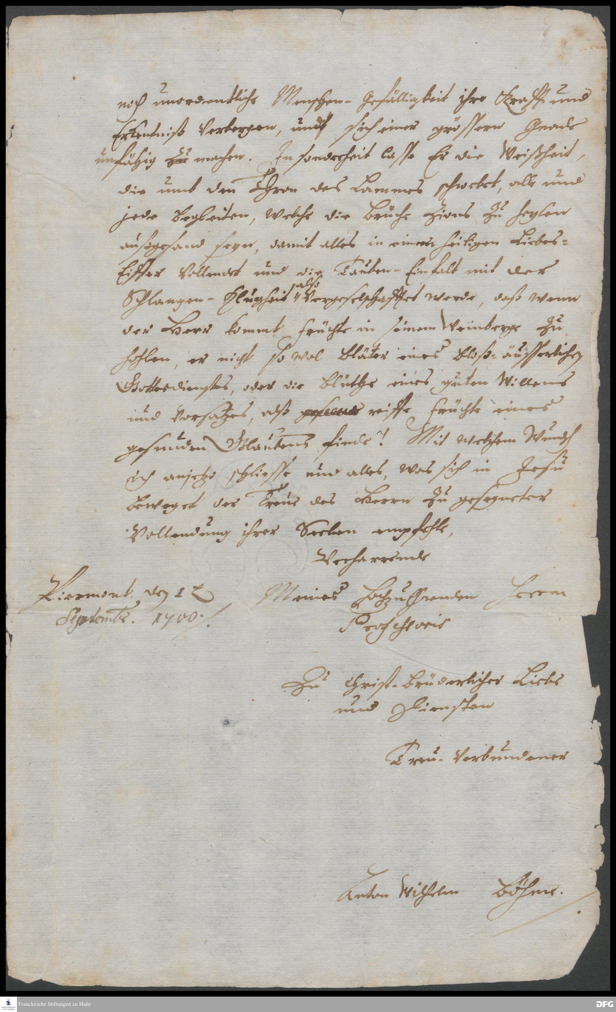 Brief von Anton Wilhelm Böhme an August Hermann Francke.