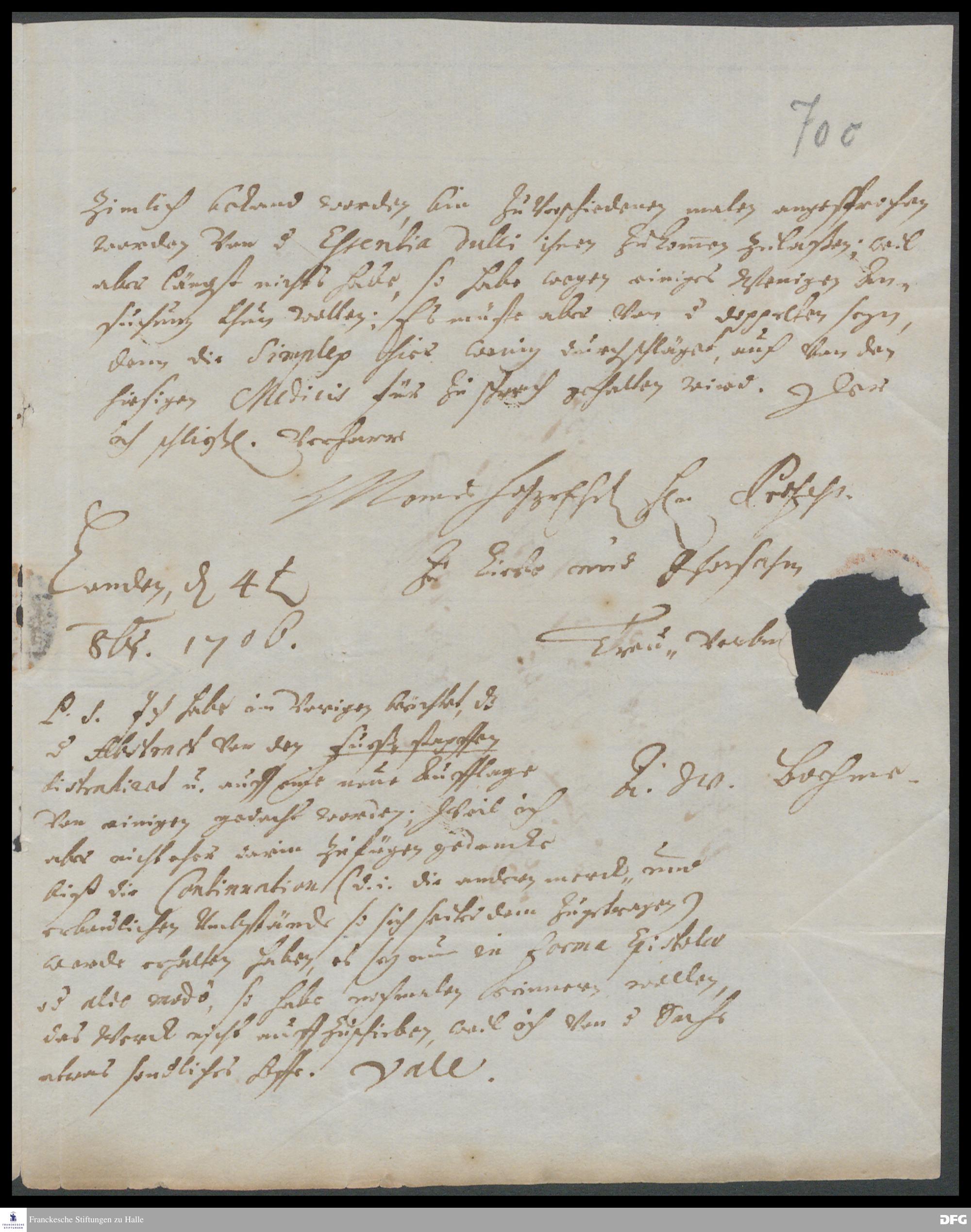 Brief von Anton Wilhelm Böhme an August Hermann Francke.
