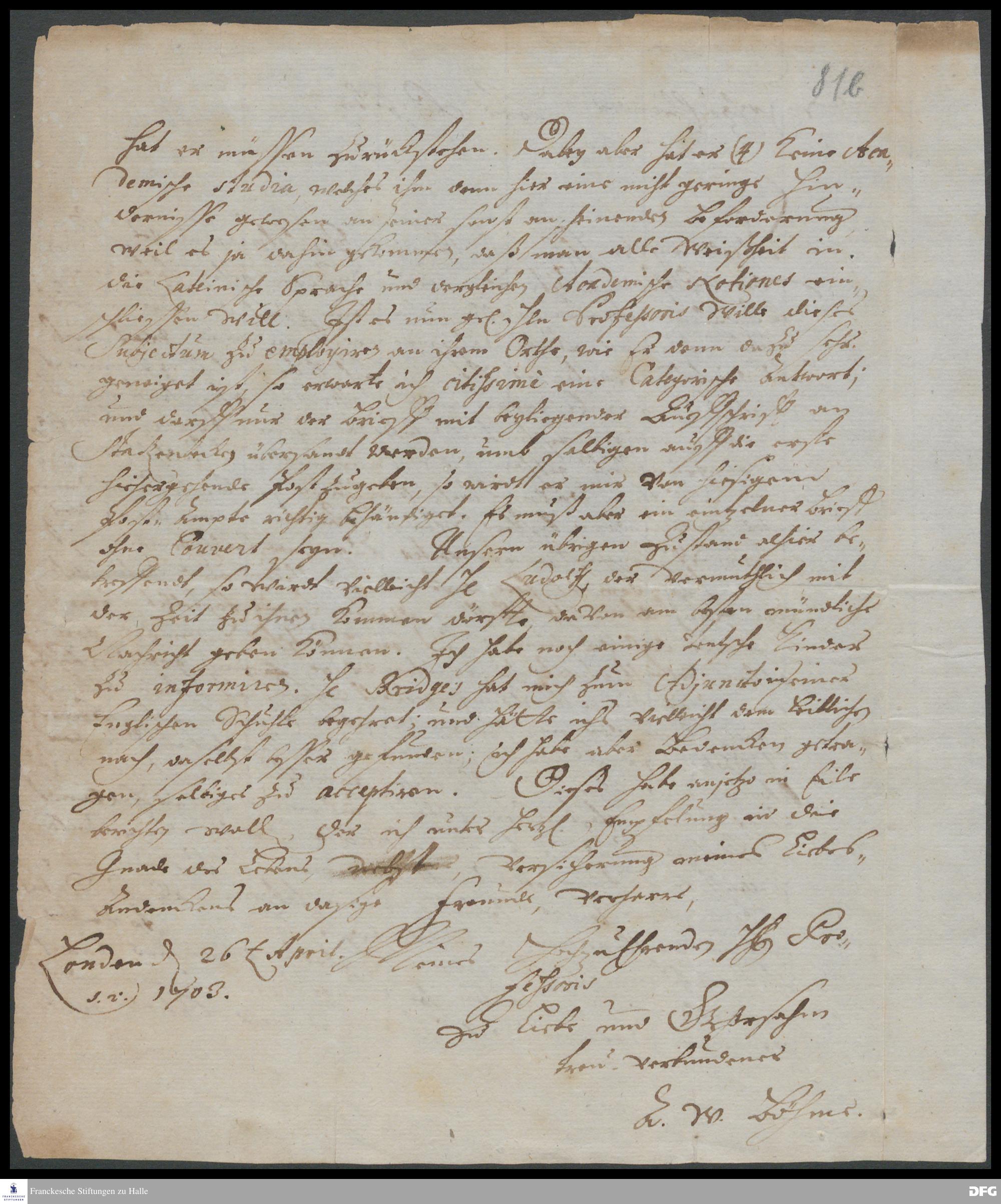 Brief von Anton Wilhelm Böhme an August Hermann Francke.