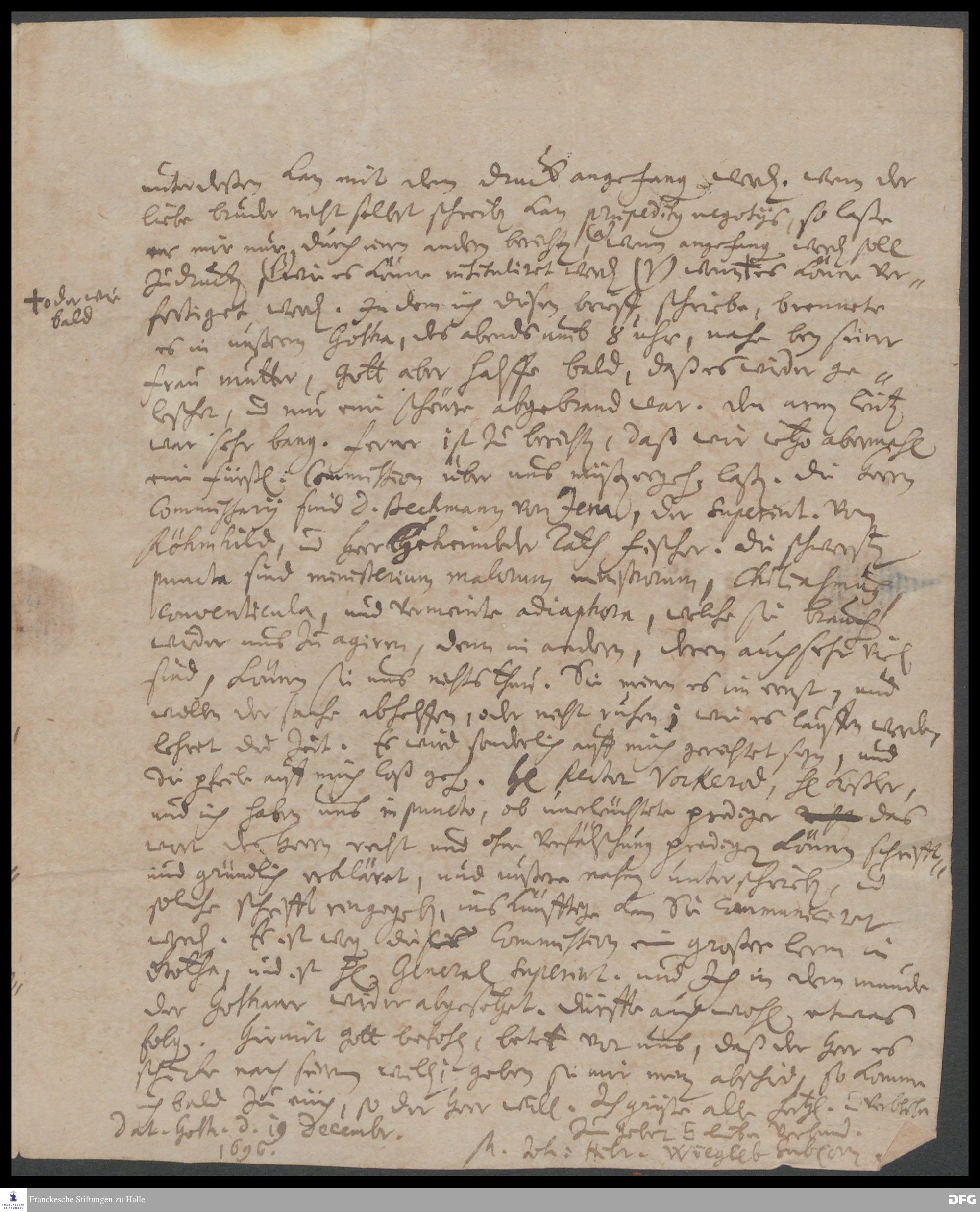 Brief von Johann Hieronymus Wiegleb an August Hermann Francke.