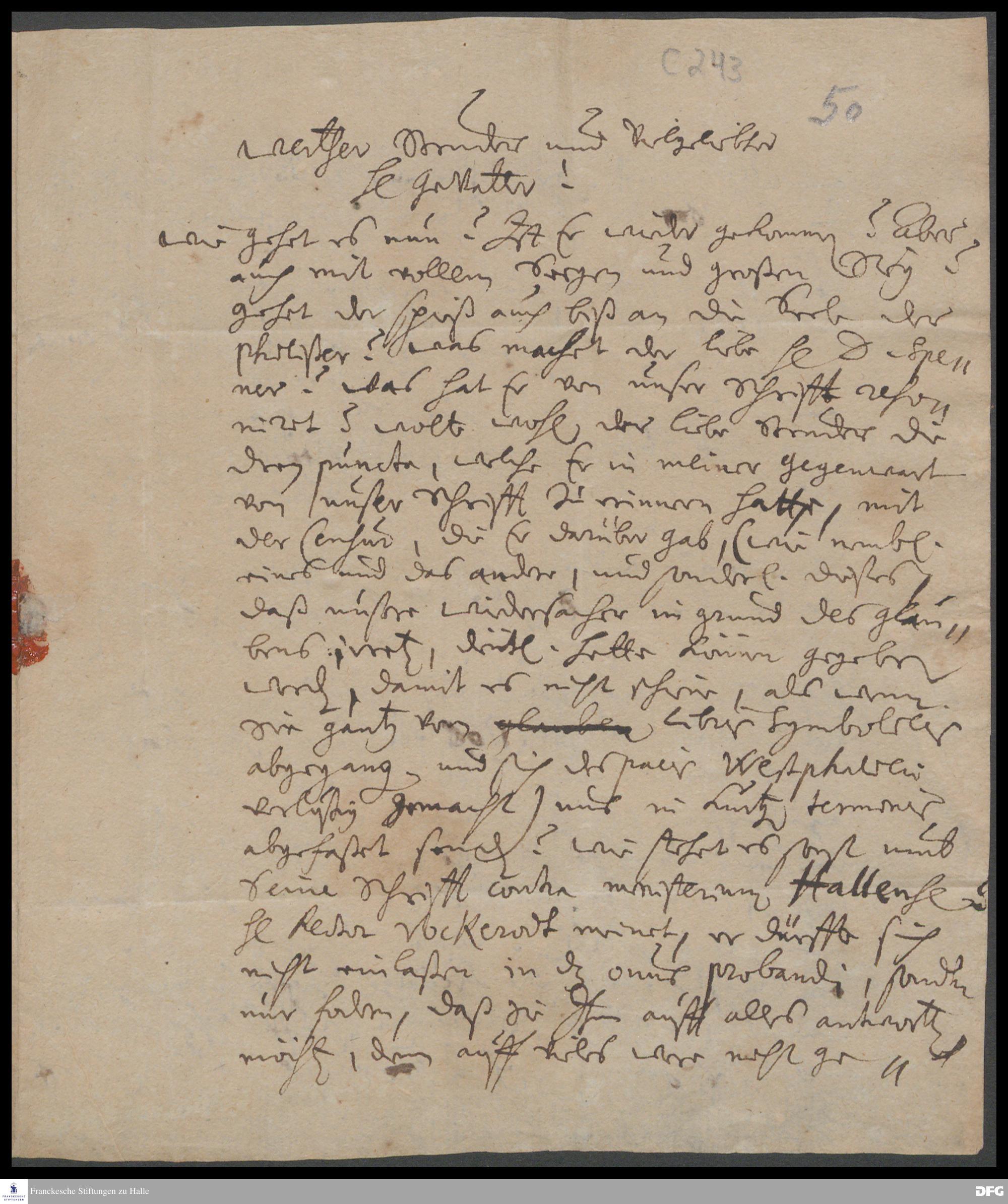 Brief von Johann Hieronymus Wiegleb an August Hermann Francke.