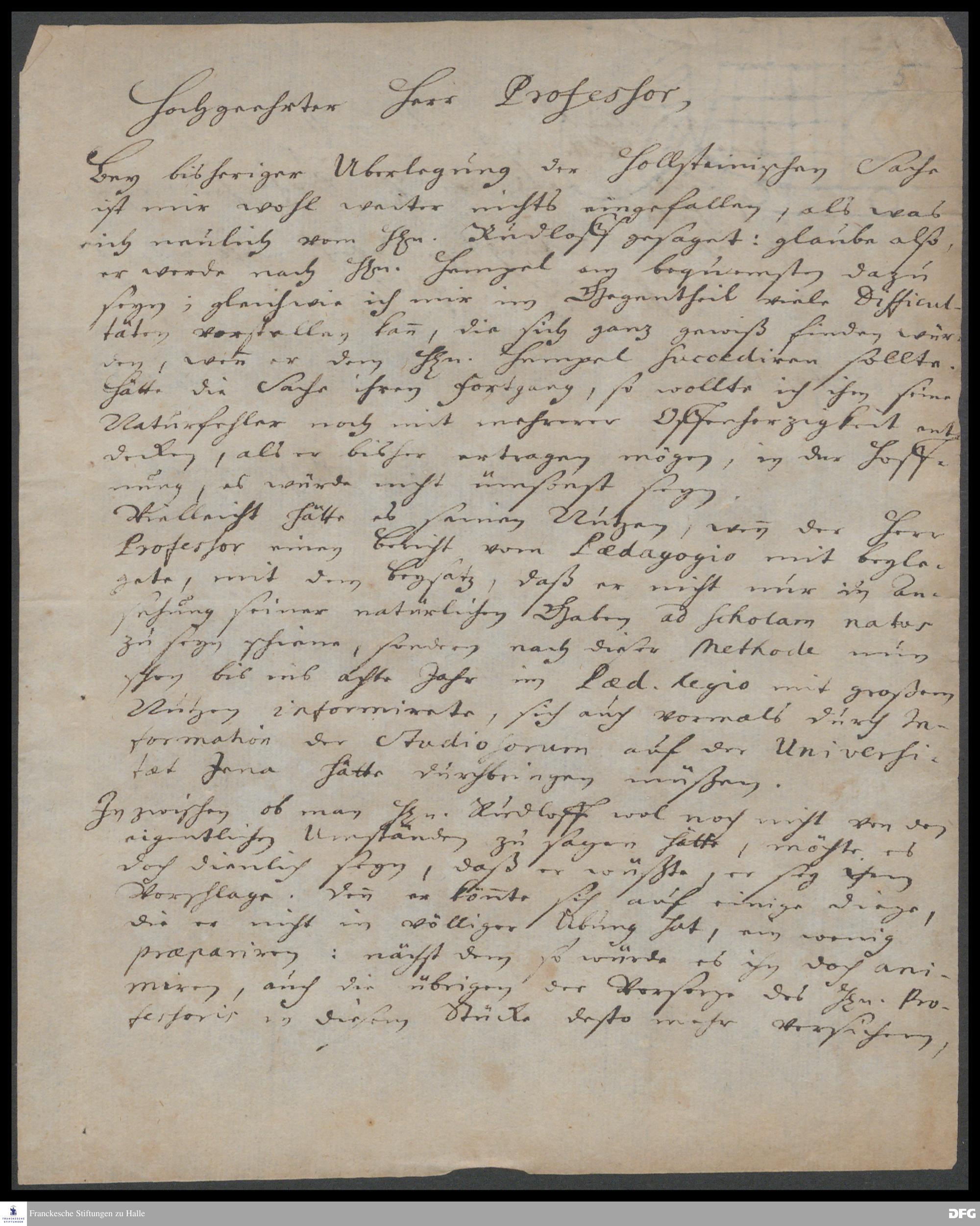 Brief von Hieronymus Freyer an August Hermann Francke.