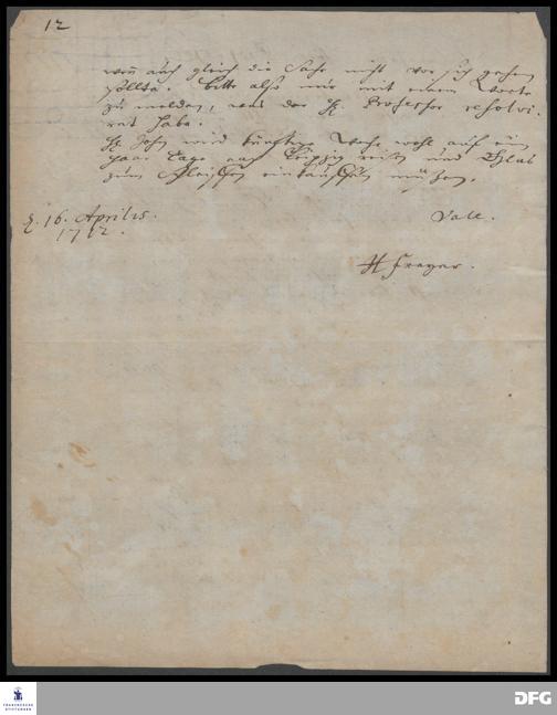 Brief von Hieronymus Freyer an August Hermann Francke.