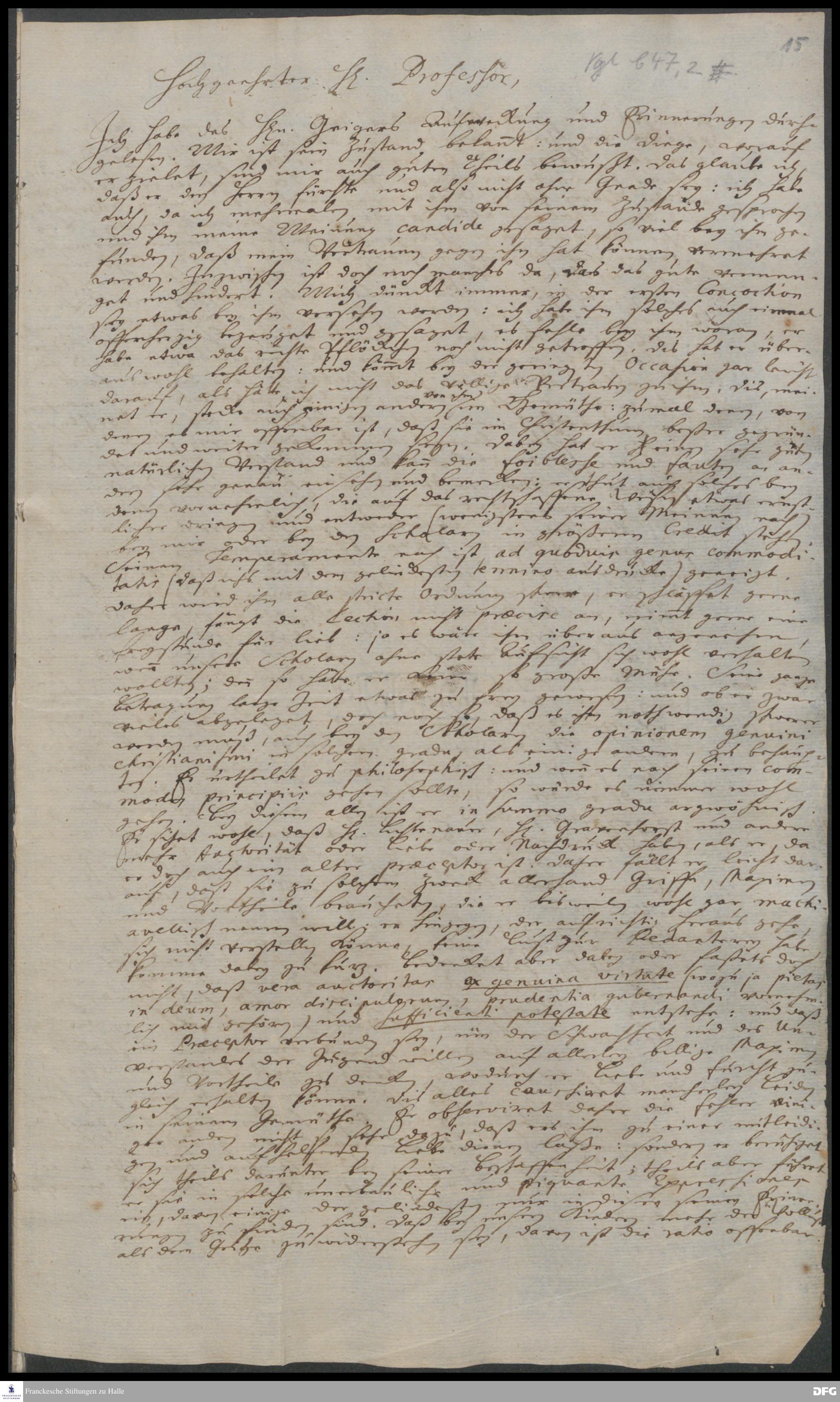 Brief von Hieronymus Freyer an August Hermann Francke.