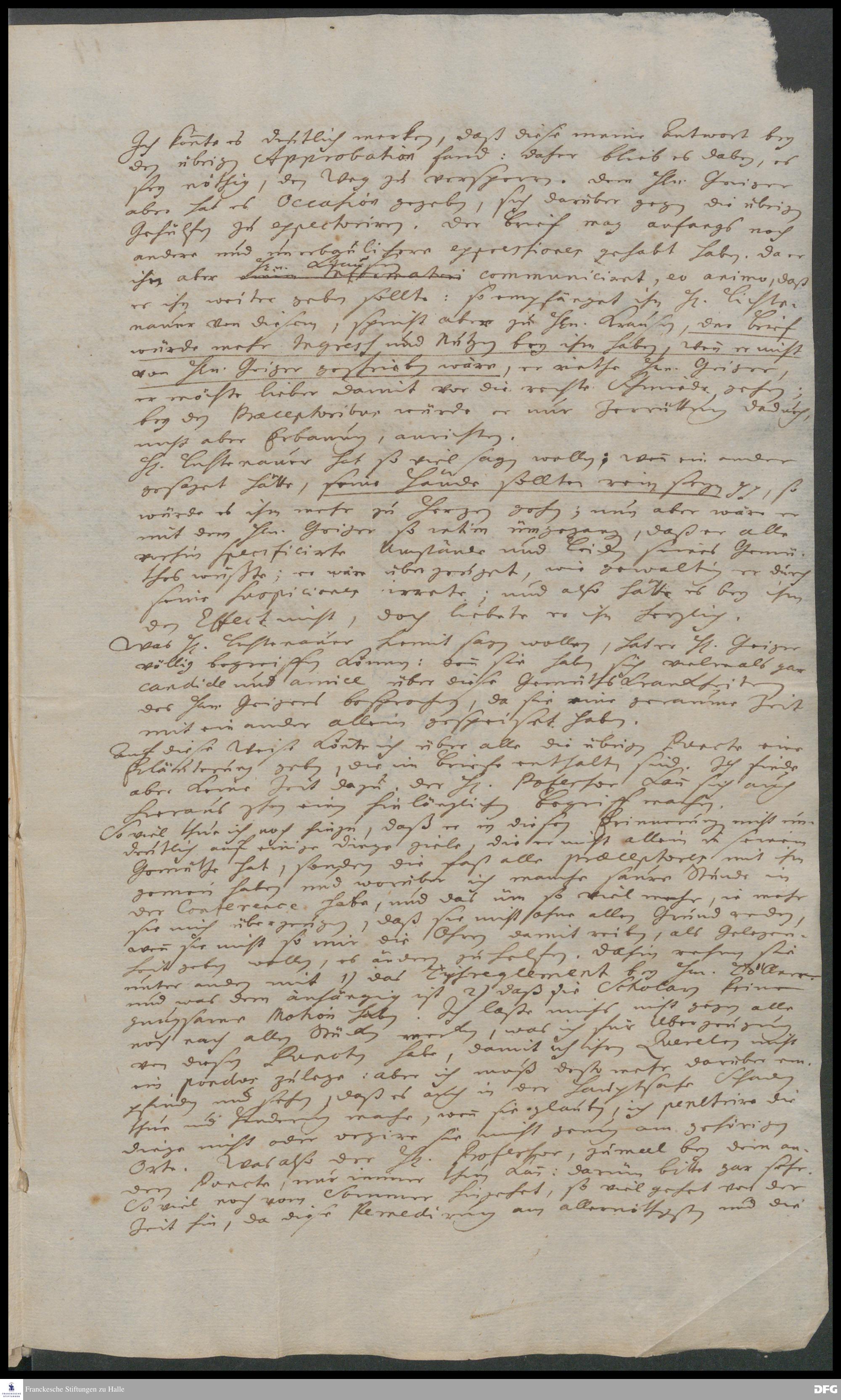 Brief von Hieronymus Freyer an August Hermann Francke.