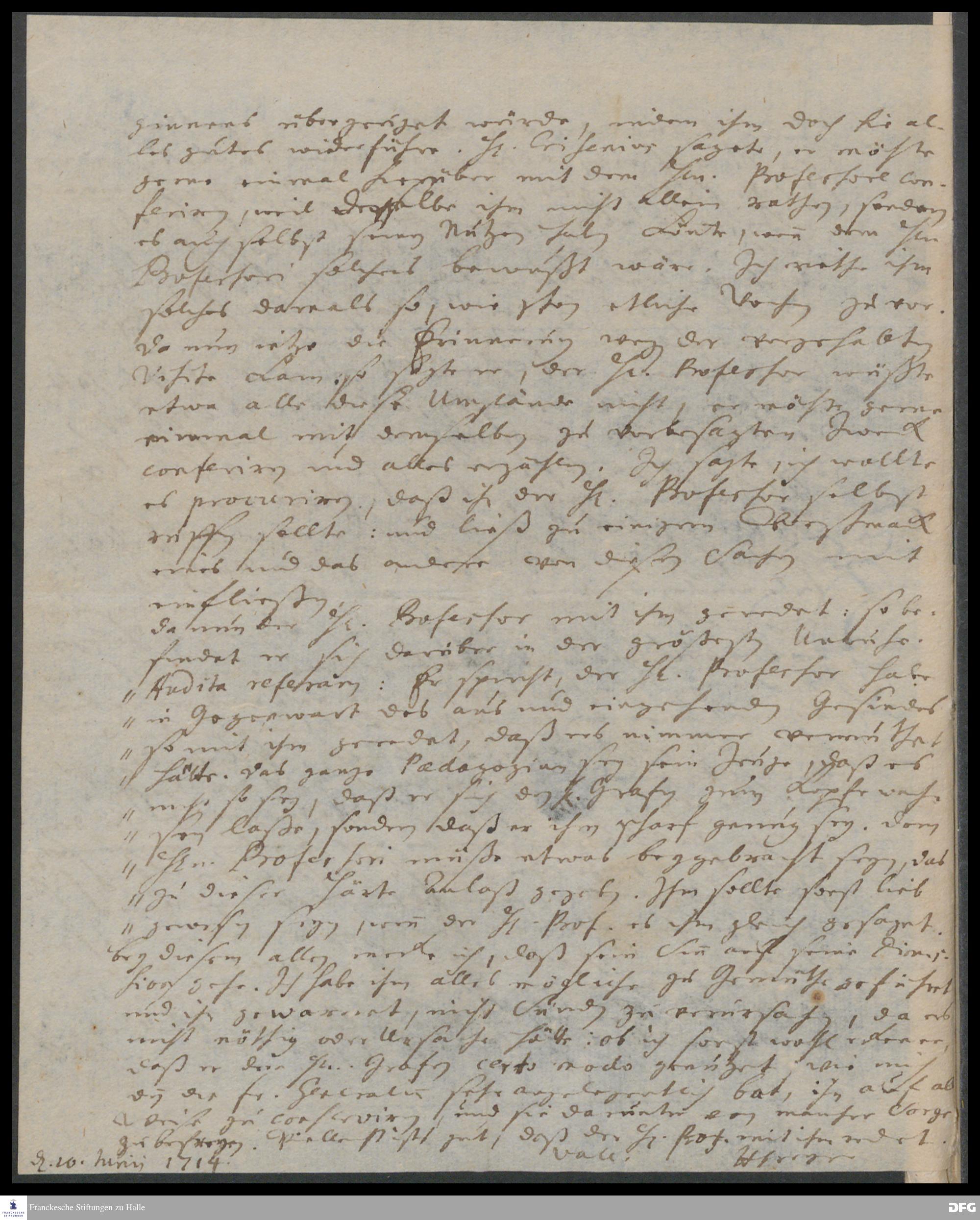 Brief von Hieronymus Freyer an August Hermann Francke.