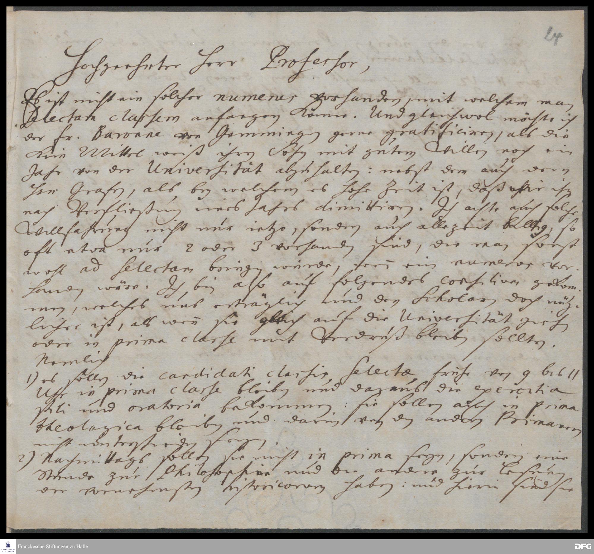 Brief von Hieronymus Freyer an August Hermann Francke.