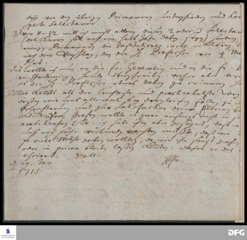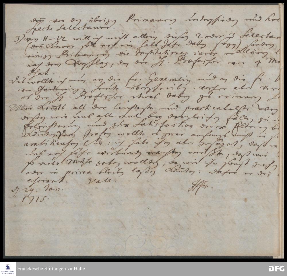 Brief von Hieronymus Freyer an August Hermann Francke.