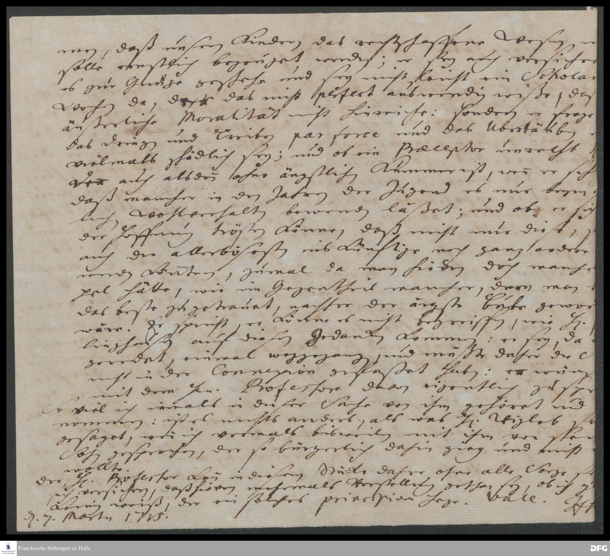 Brief von Hieronymus Freyer an August Hermann Francke.
