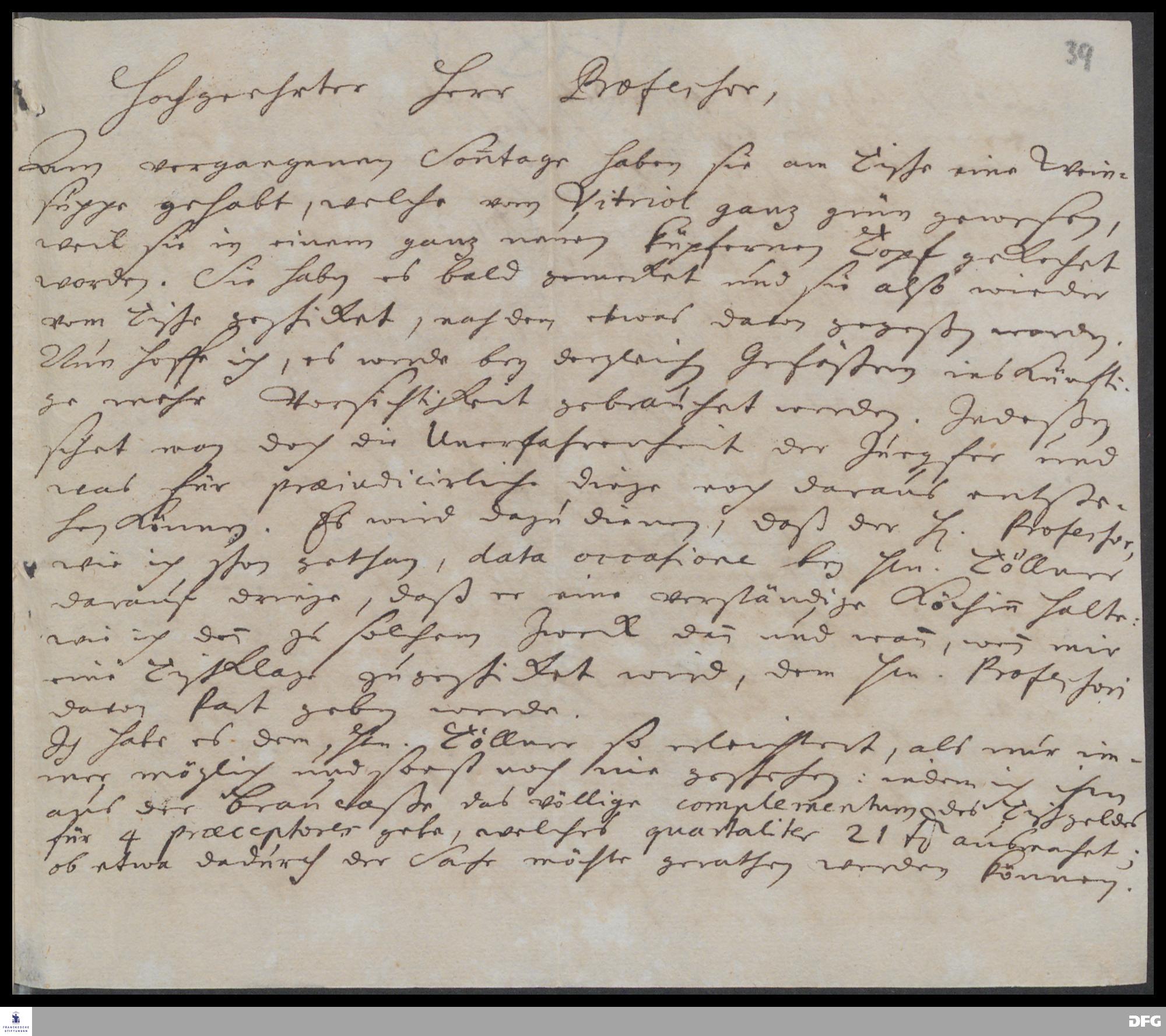 Brief von Hieronymus Freyer an August Hermann Francke.