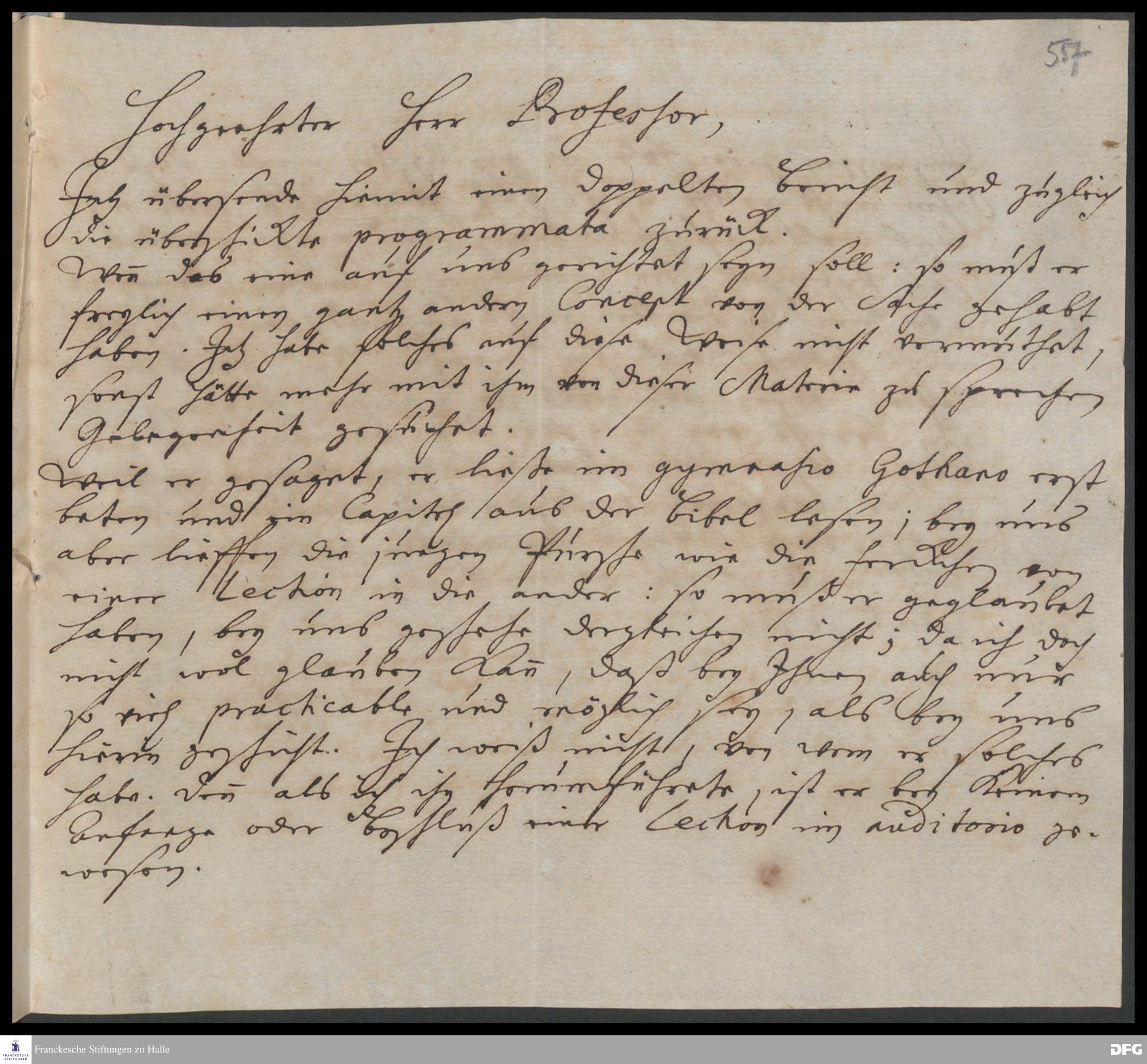 Brief von Hieronymus Freyer an August Hermann Francke.