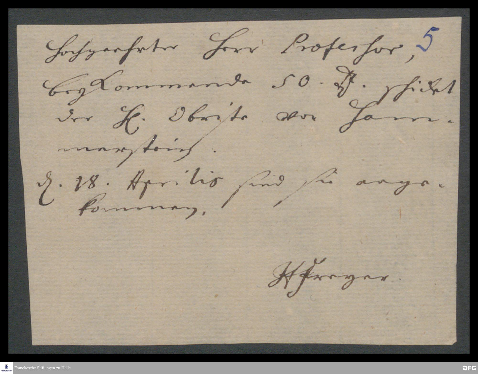 Brief von Hieronymus Freyer an August Hermann Francke.