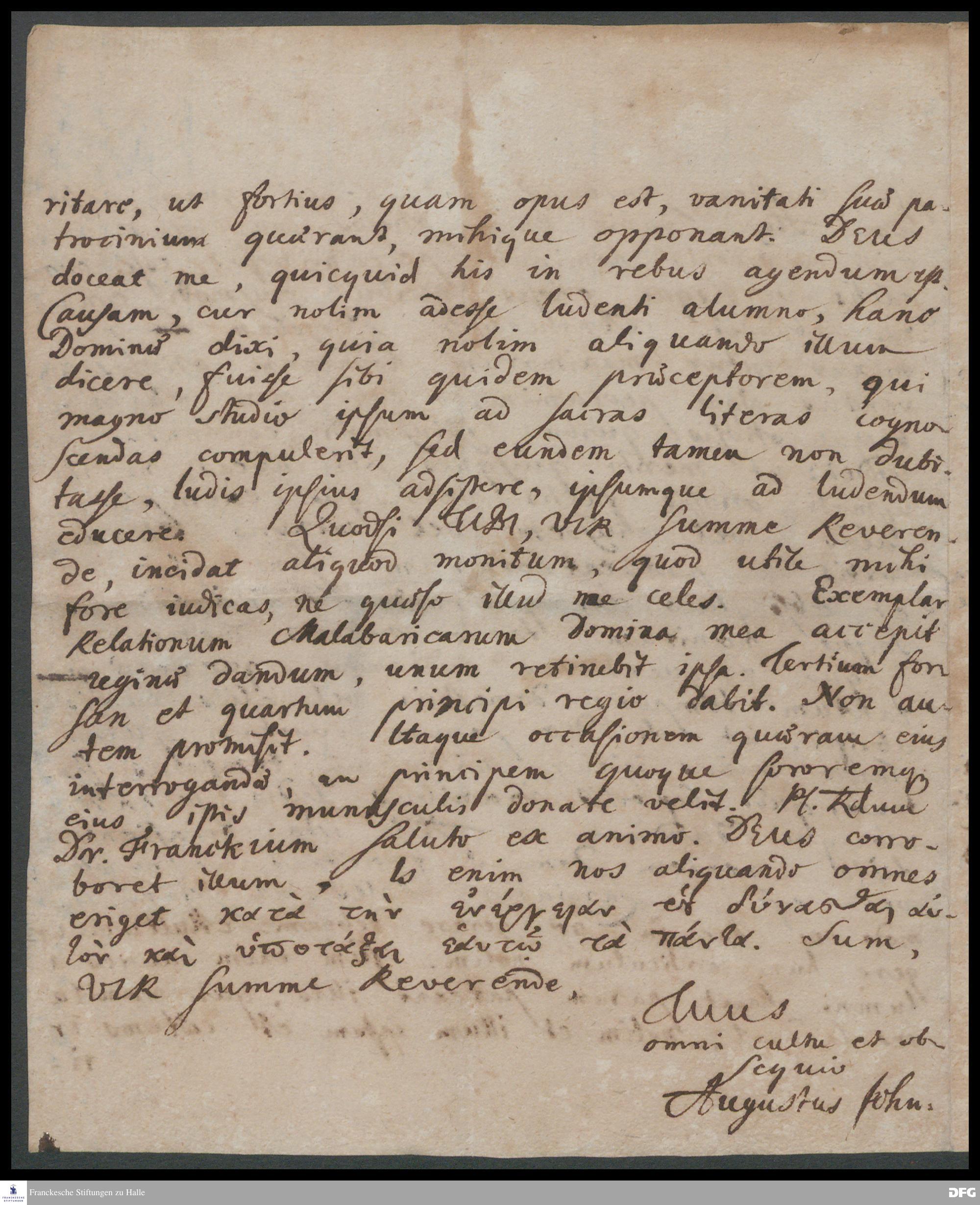 Brief von August John an August Hermann Francke.