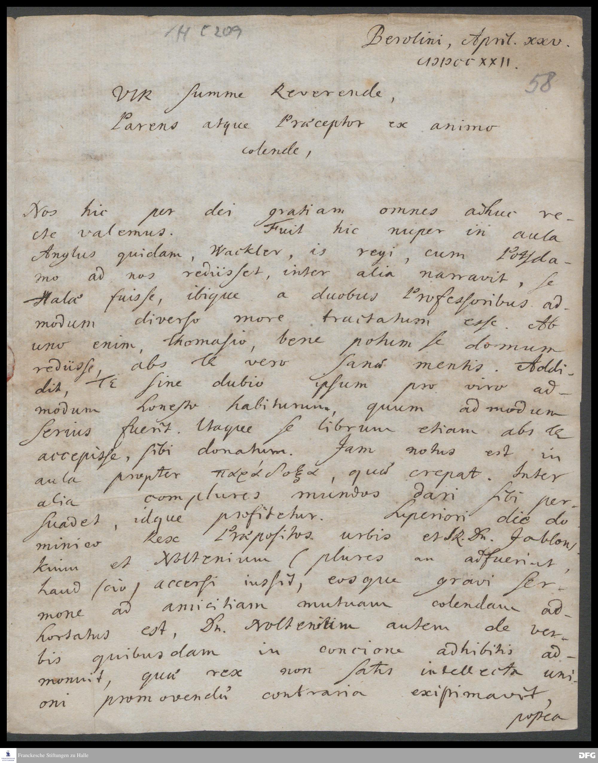 Brief von August John an August Hermann Francke.