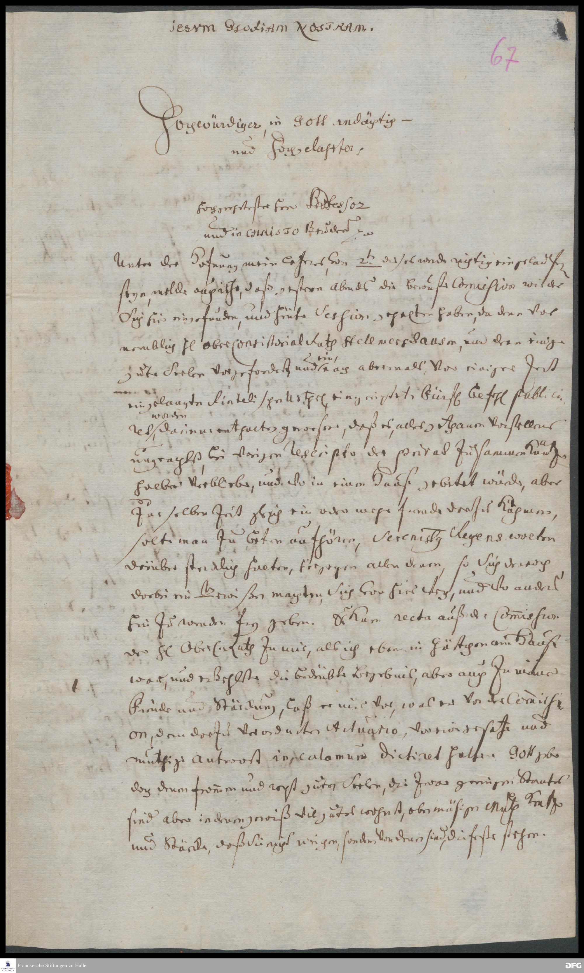 Brief von Johann Friedrich v. Werthern an August Hermann Francke.