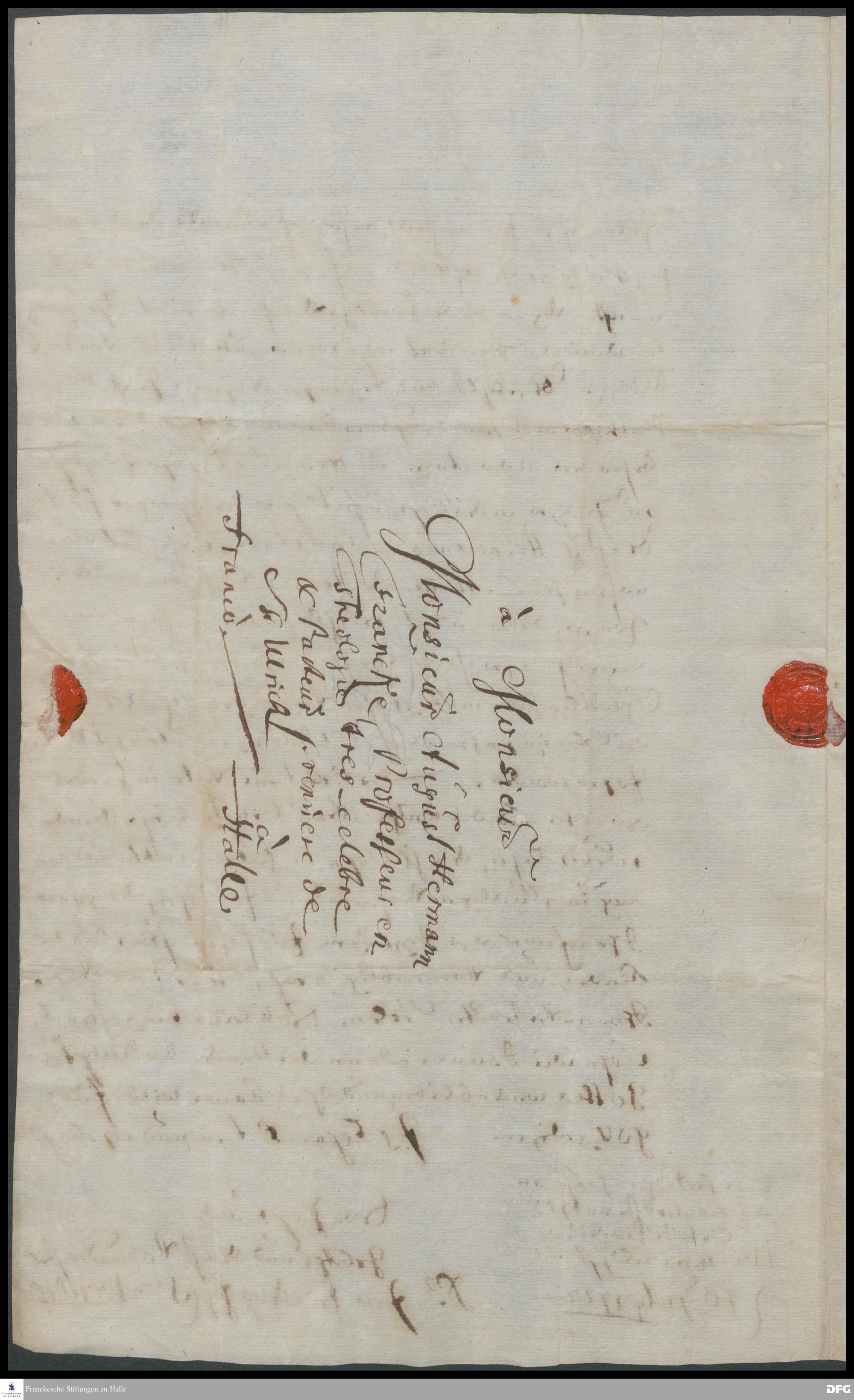 Brief von Johann Friedrich v. Werthern an August Hermann Francke.