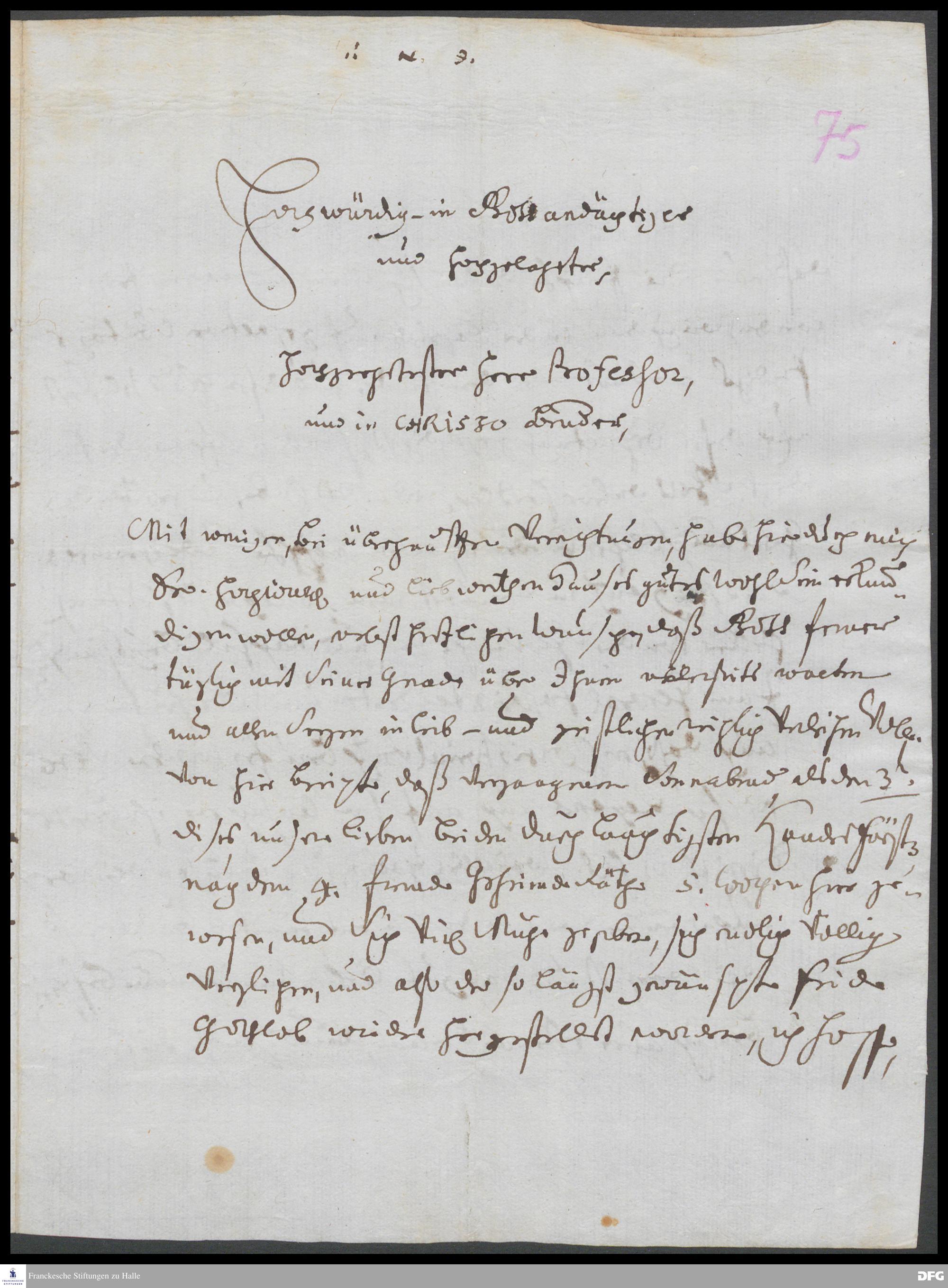 Brief von Johann Friedrich v. Werthern an August Hermann Francke.