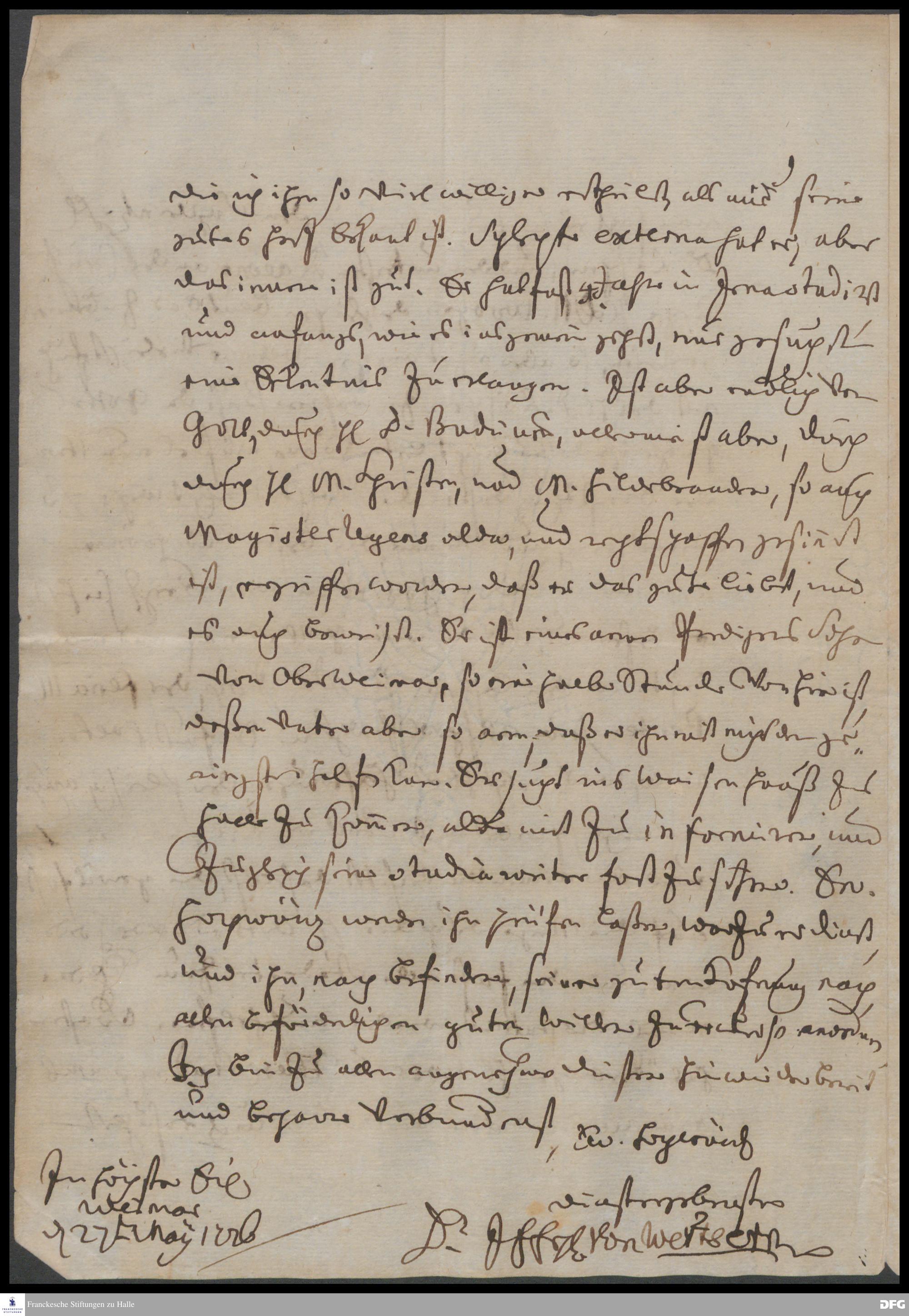 Brief von Johann Friedrich von Werthern an August Hermann Francke.