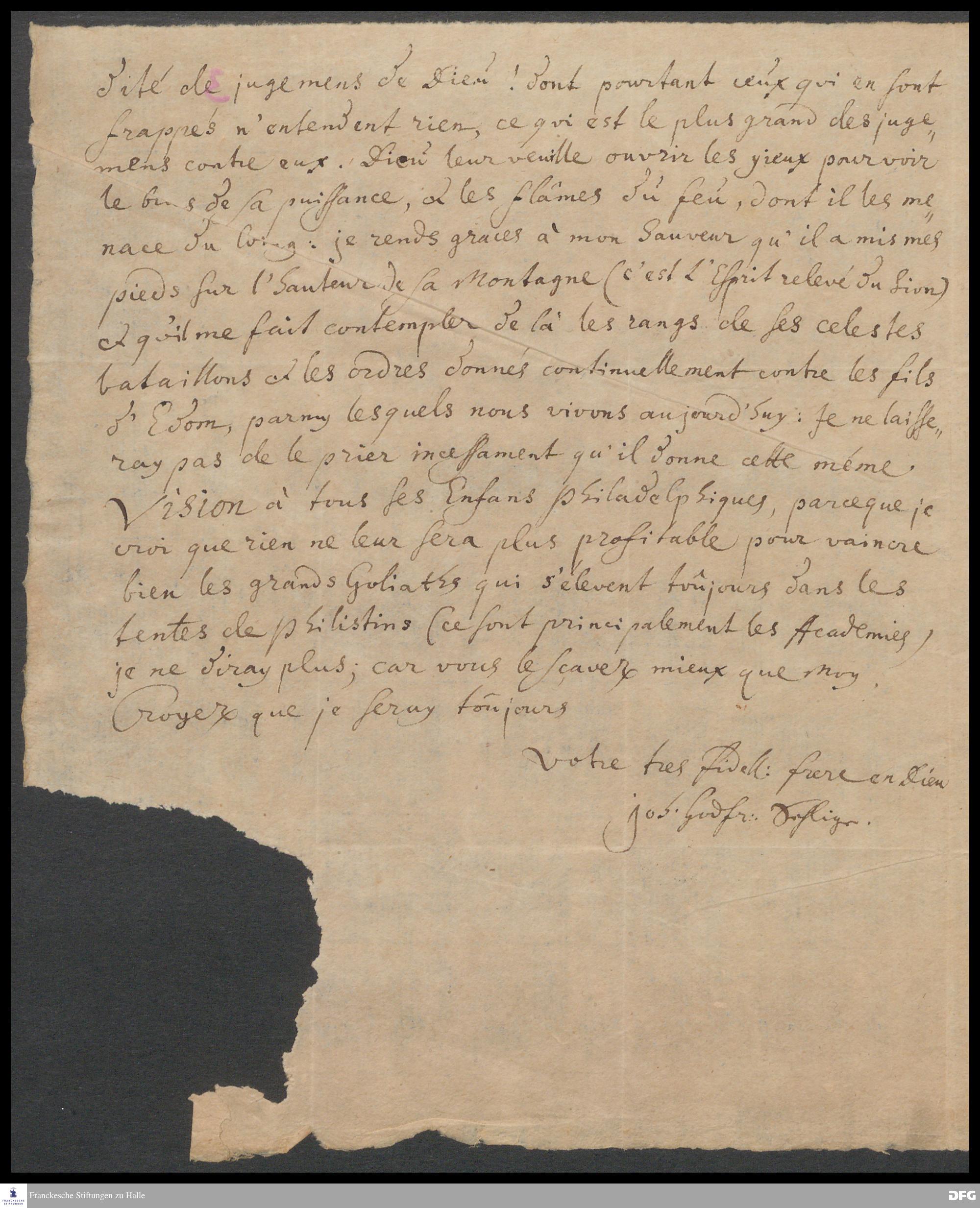 Brief von Johann Gottfried Sehliger an August Hermann Francke.