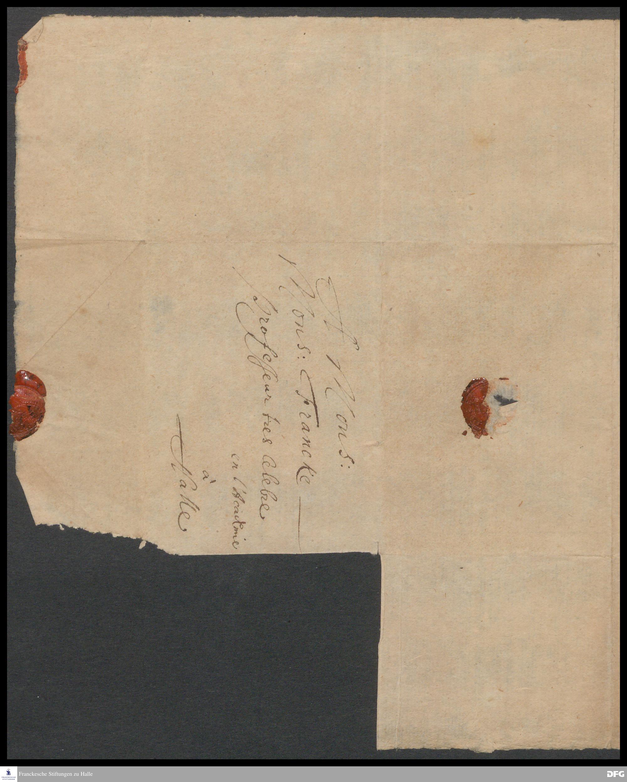 Brief von Johann Gottfried Sehliger an August Hermann Francke.