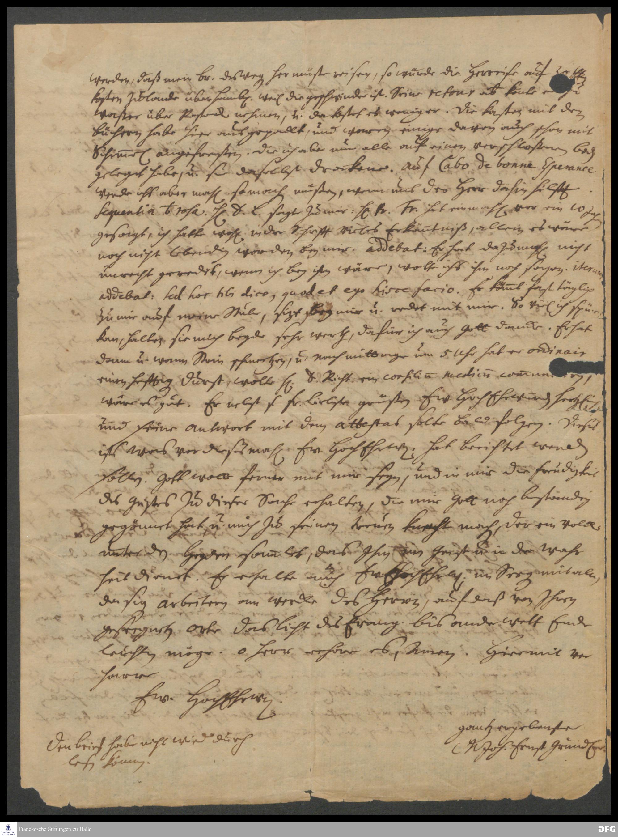 Brief von Johann Ernst Gründler an August Hermann Francke.