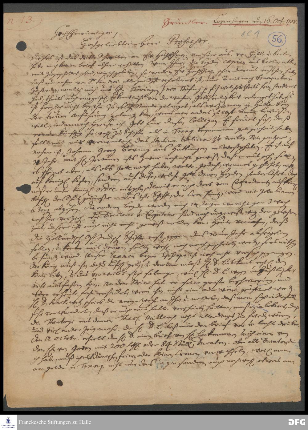 Brief von Johann Ernst Gründler an August Hermann Francke.