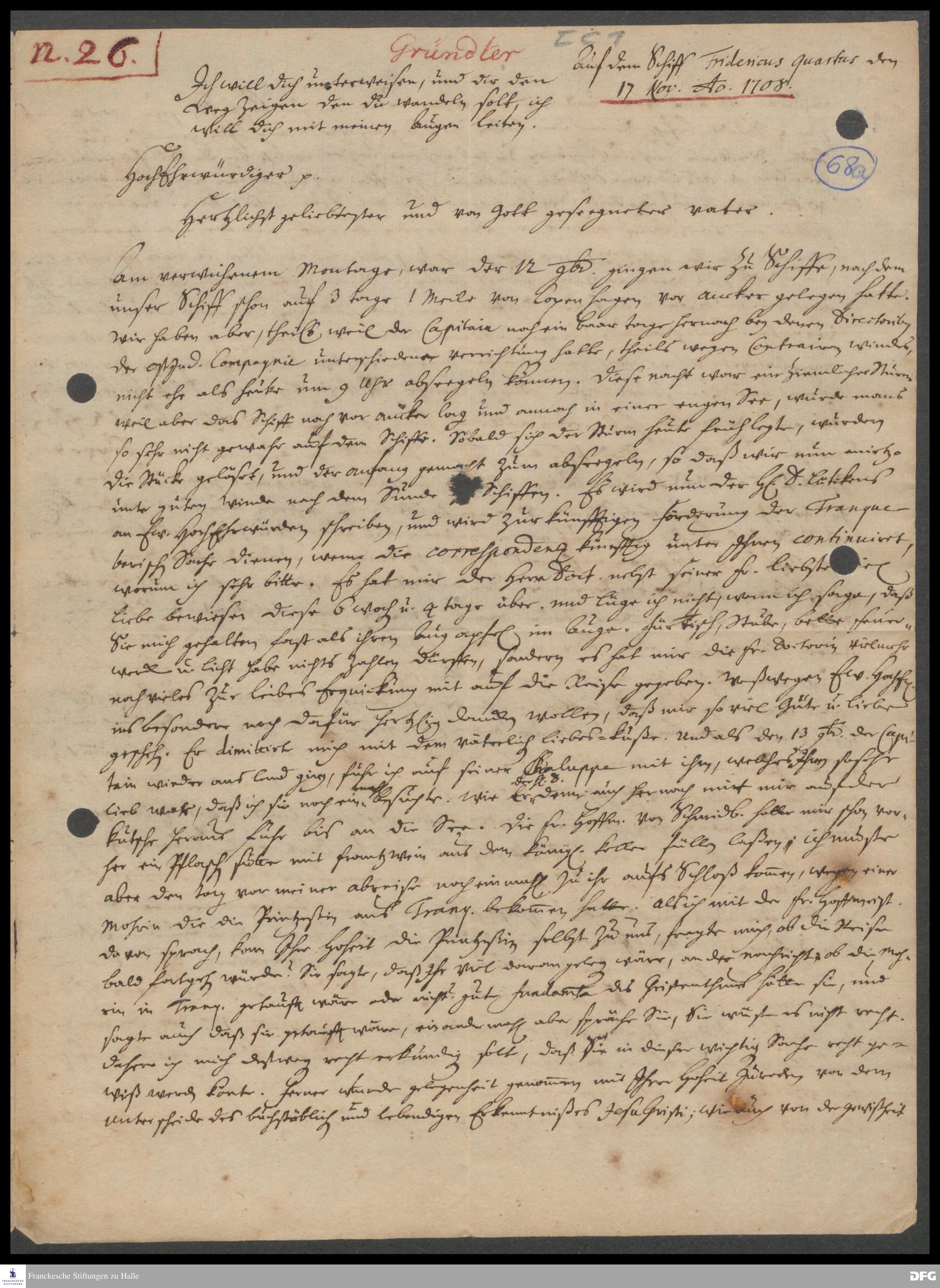 Brief von Johann Ernst Gründler an August Hermann Francke.