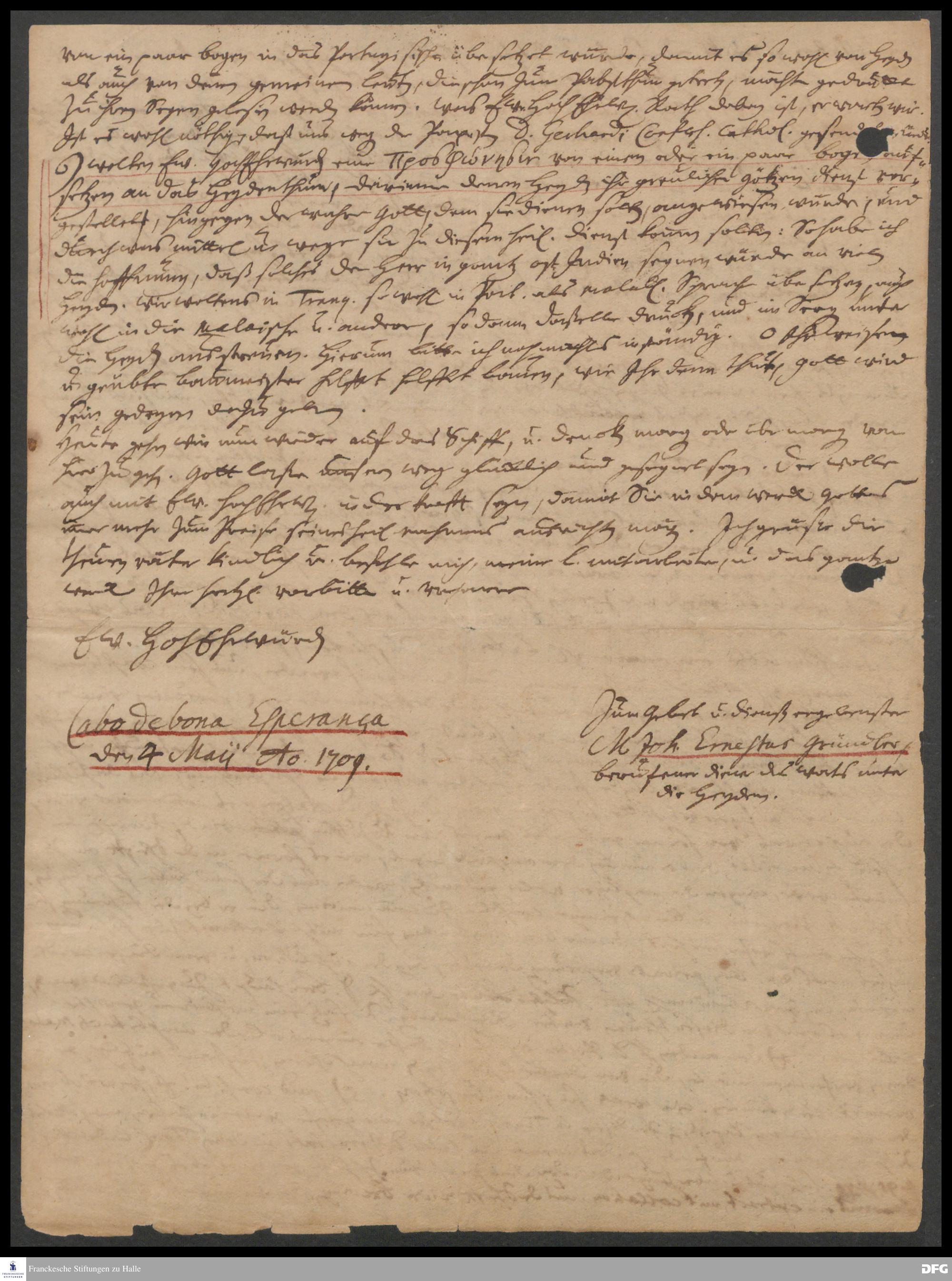 Brief von Johann Ernst Gründler an August Hermann Francke.