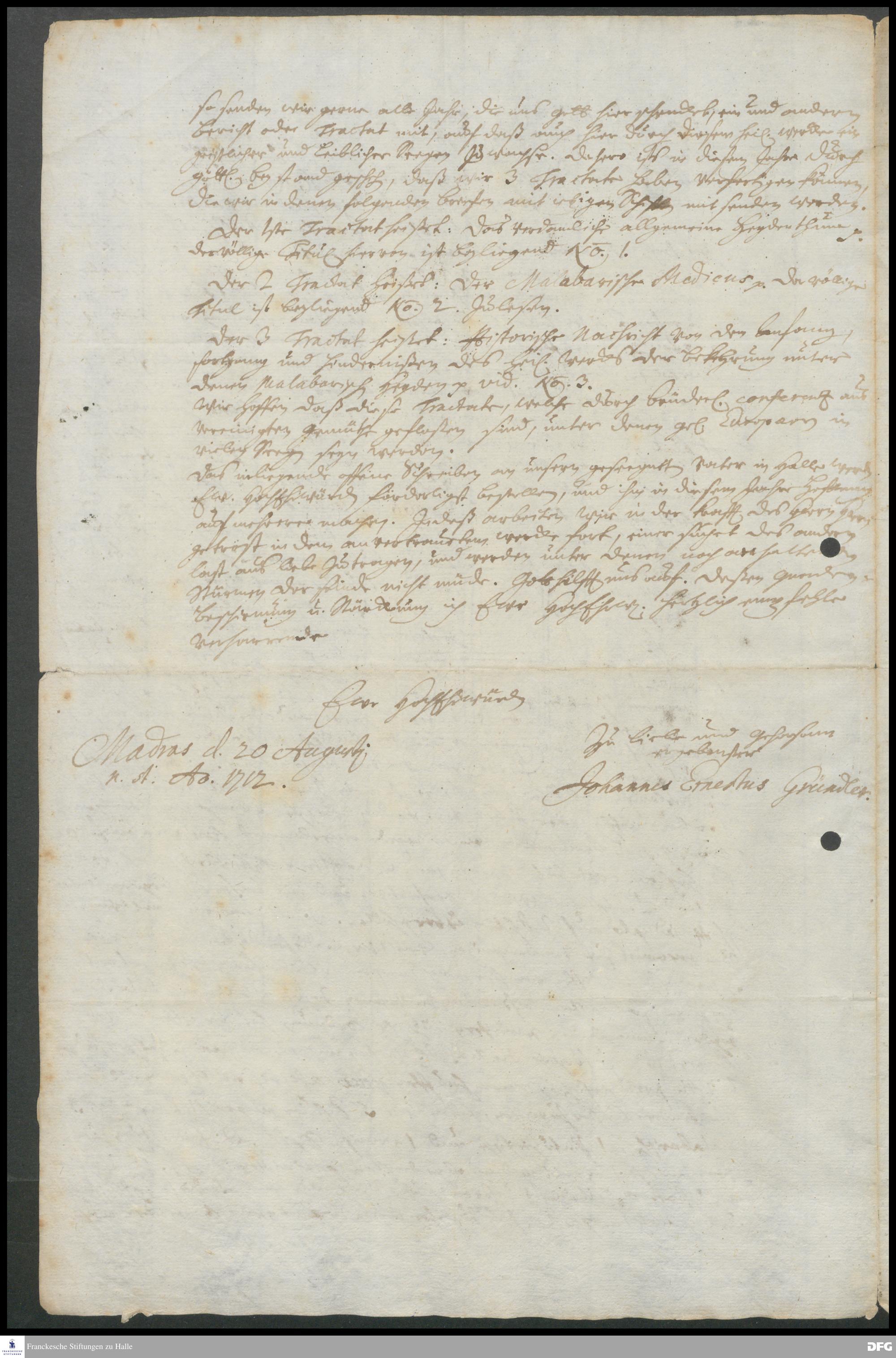Brief von Johann Ernst Gründler an [August Hermann Francke ?].