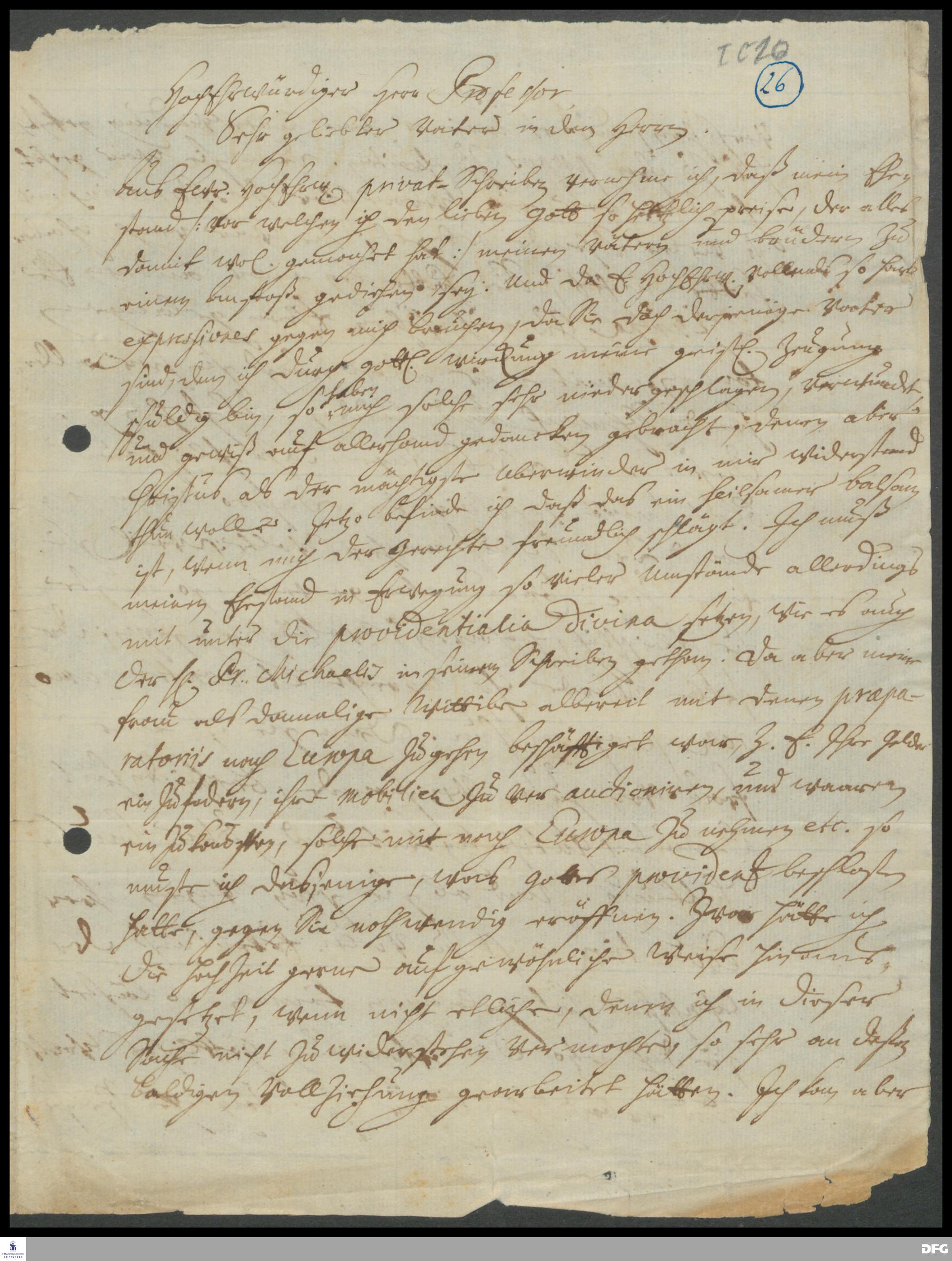Brief von Johann Ernst Gründler an August Hermann Francke.