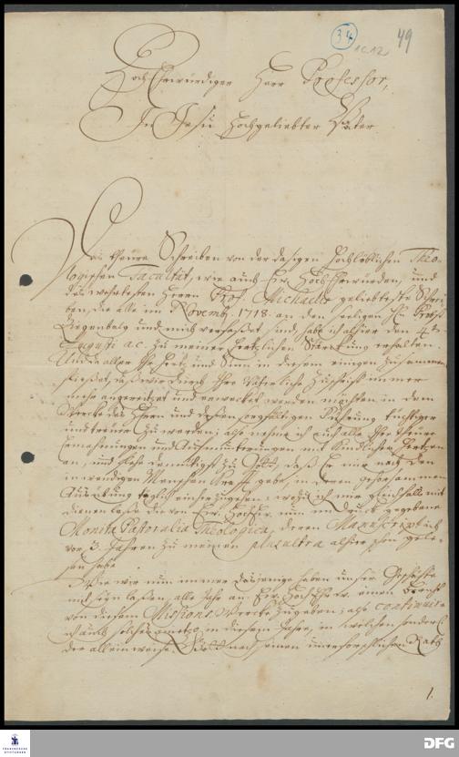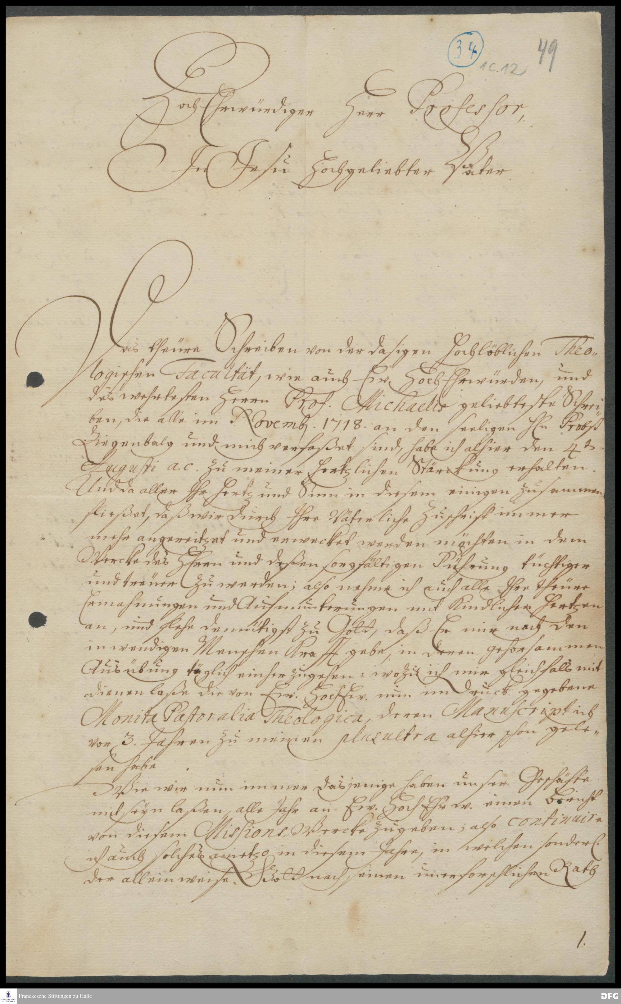 Brief von Johann Ernst Gründler an August Hermann Francke.