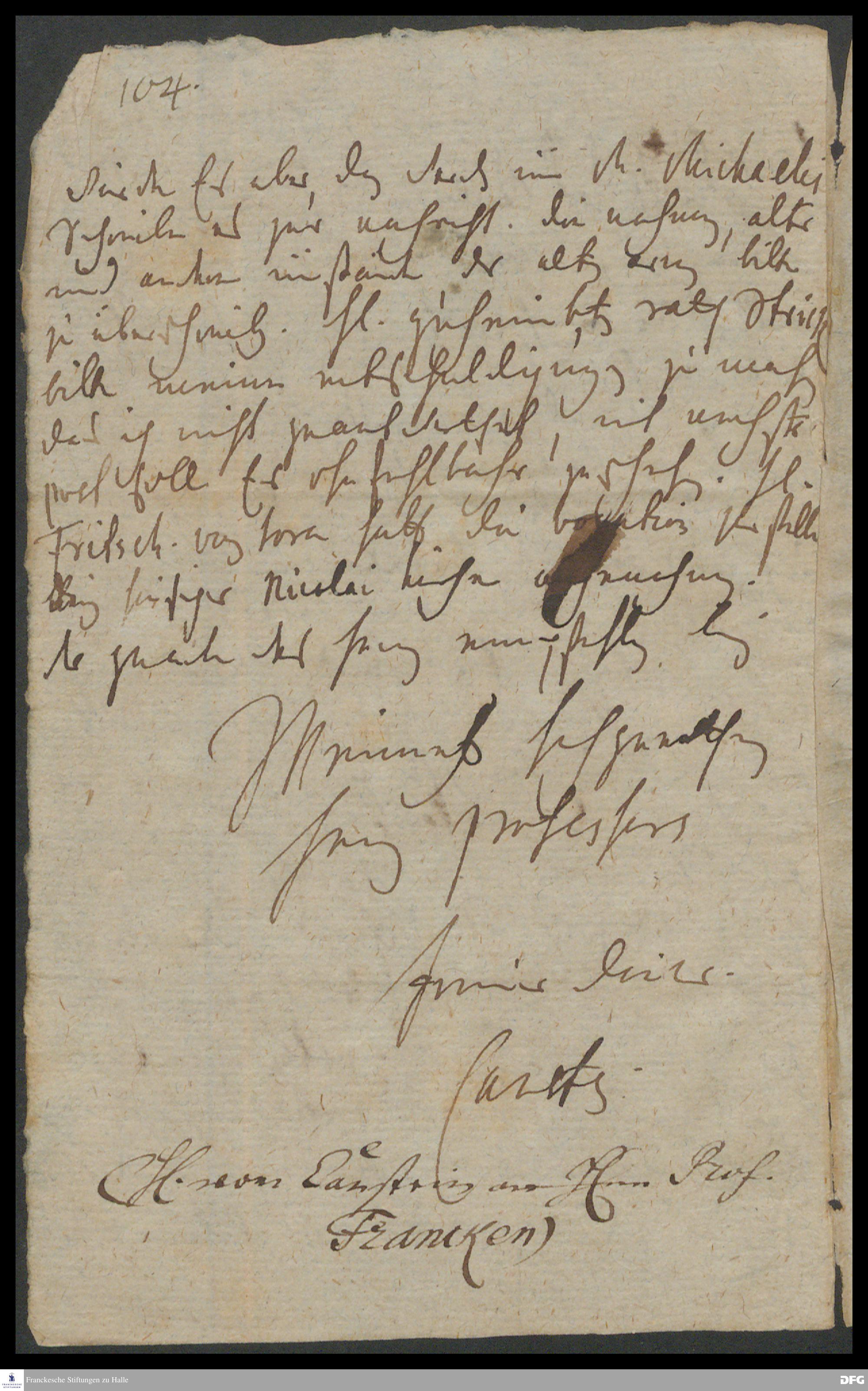 Brief von Carl Hildebrand v. Canstein an August Hermann Francke.