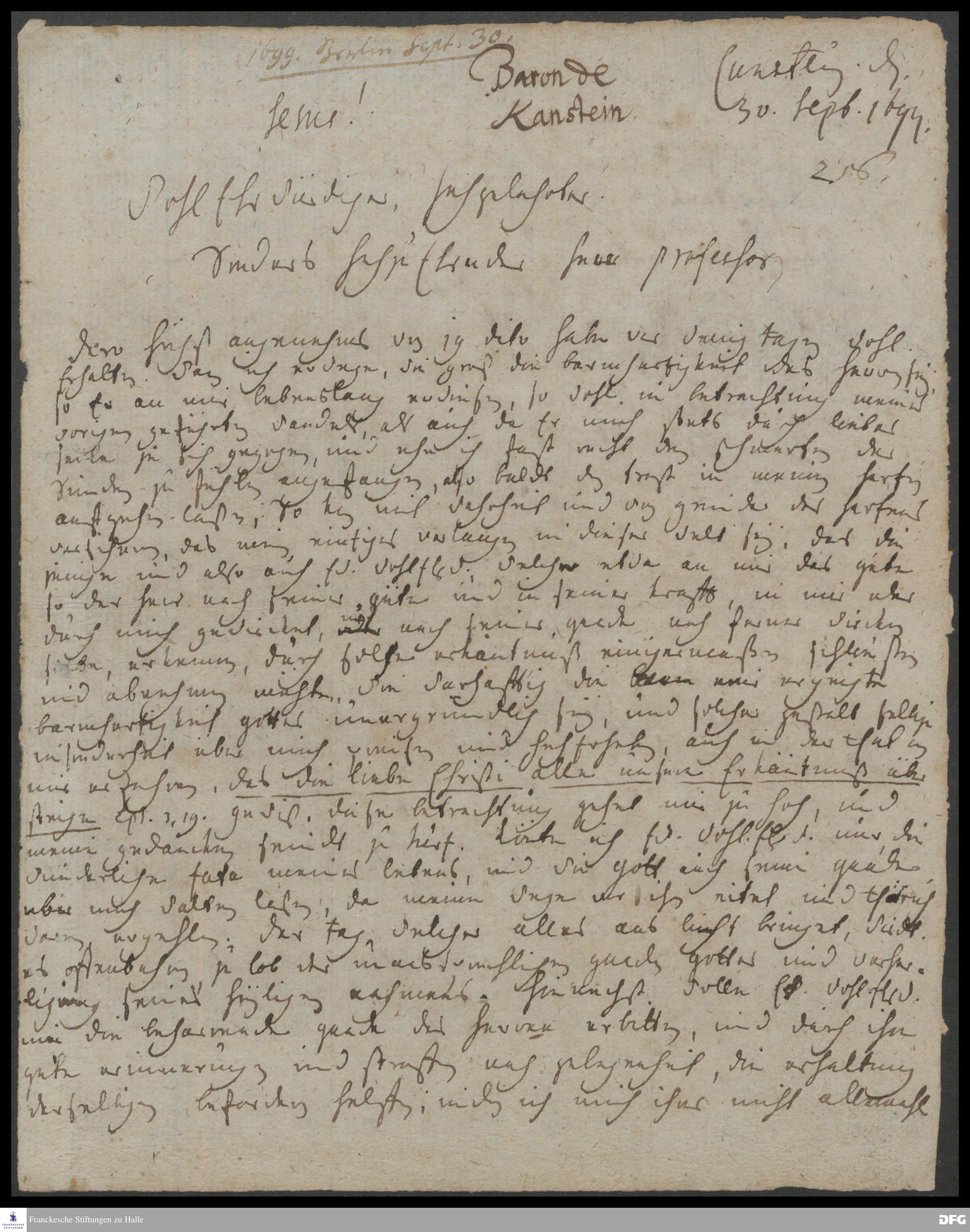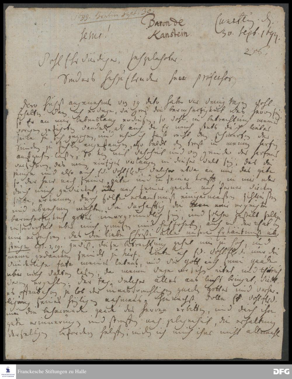 Brief von Carl Hildebrand v. Canstein an August Hermann Francke.