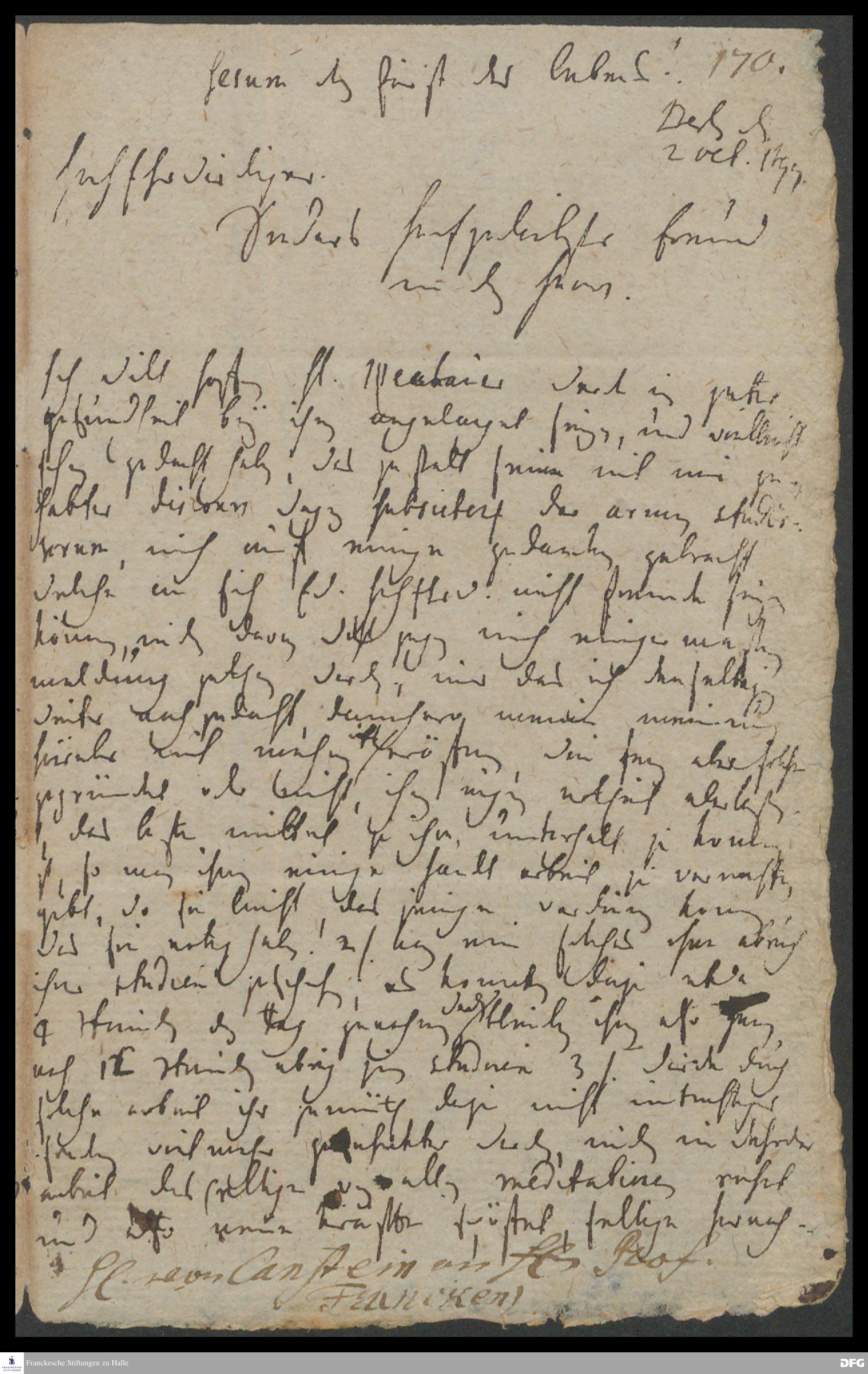 Brief von Carl Hildebrand v. Canstein an August Hermann Francke.