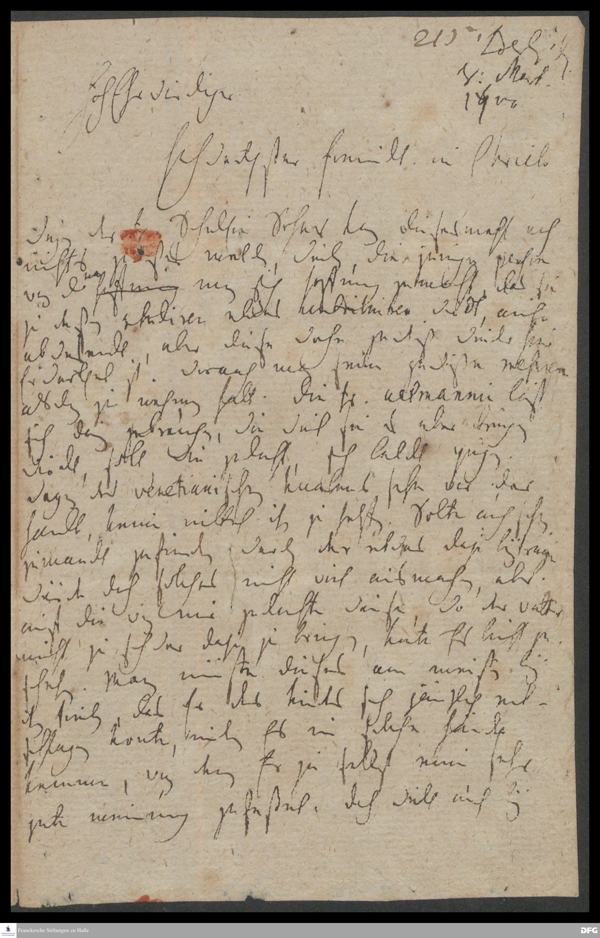 Brief von Carl Hildebrand v. Canstein an August Hermann Francke.