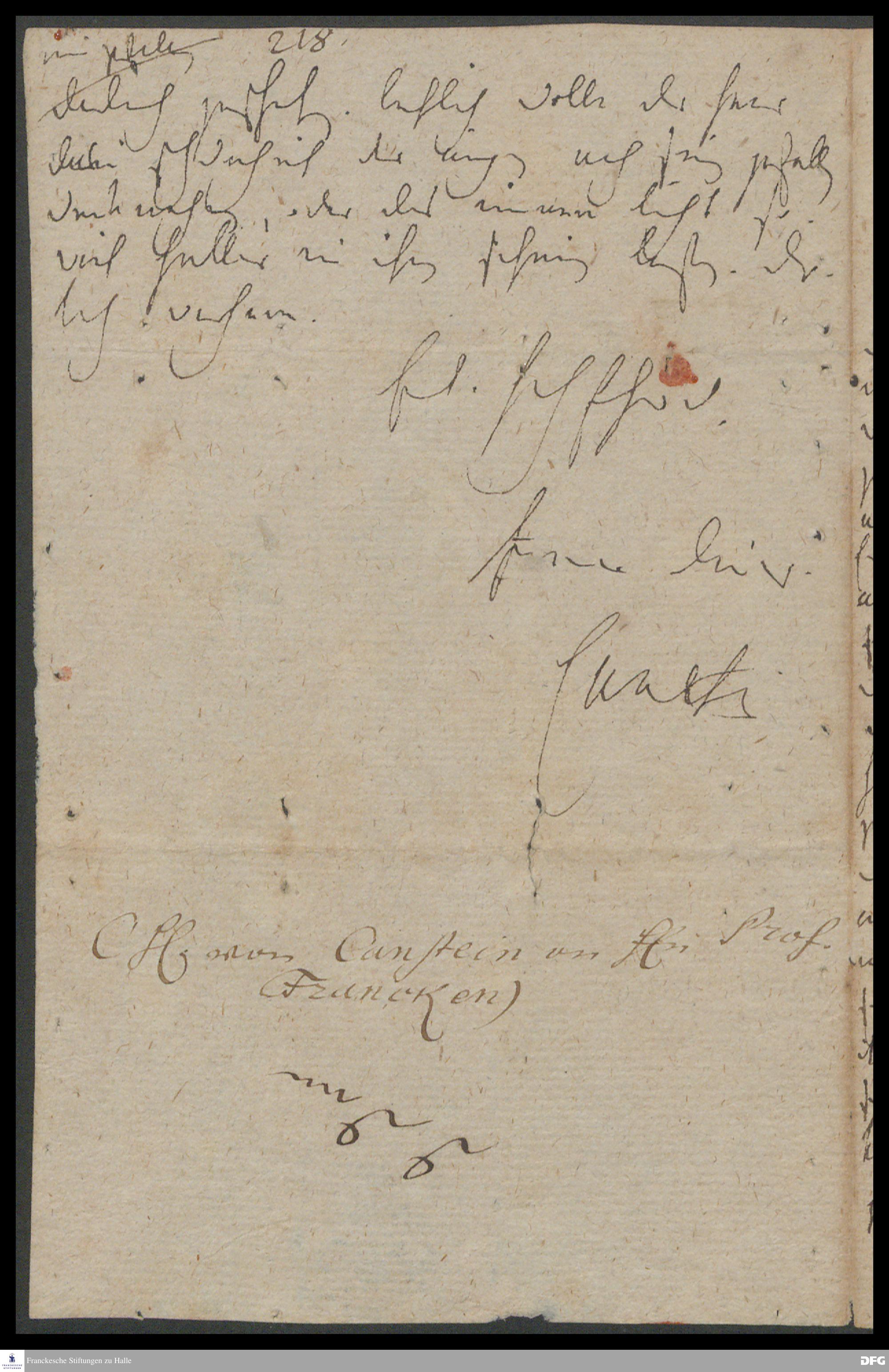 Brief von Carl Hildebrand v. Canstein an August Hermann Francke.