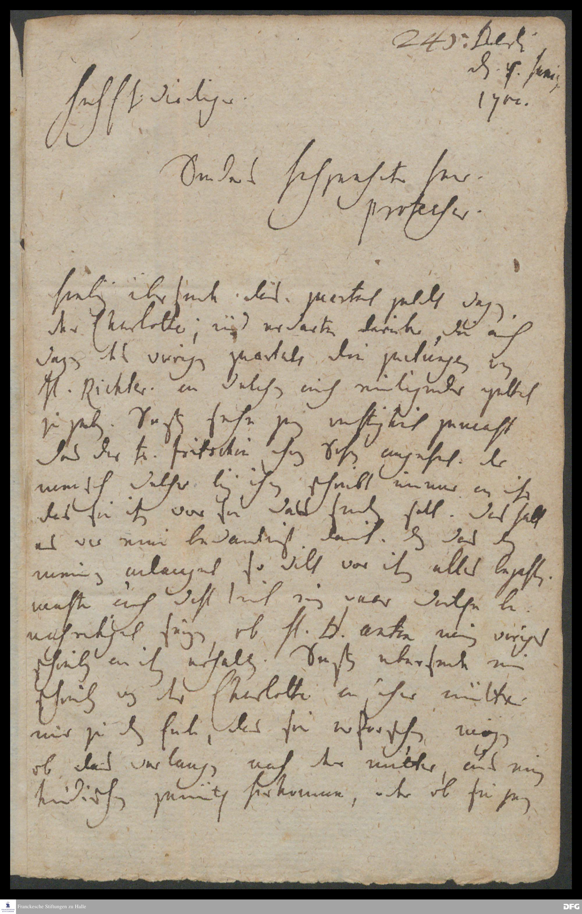 Brief von Carl Hildebrand v. Canstein an August Hermann Francke.