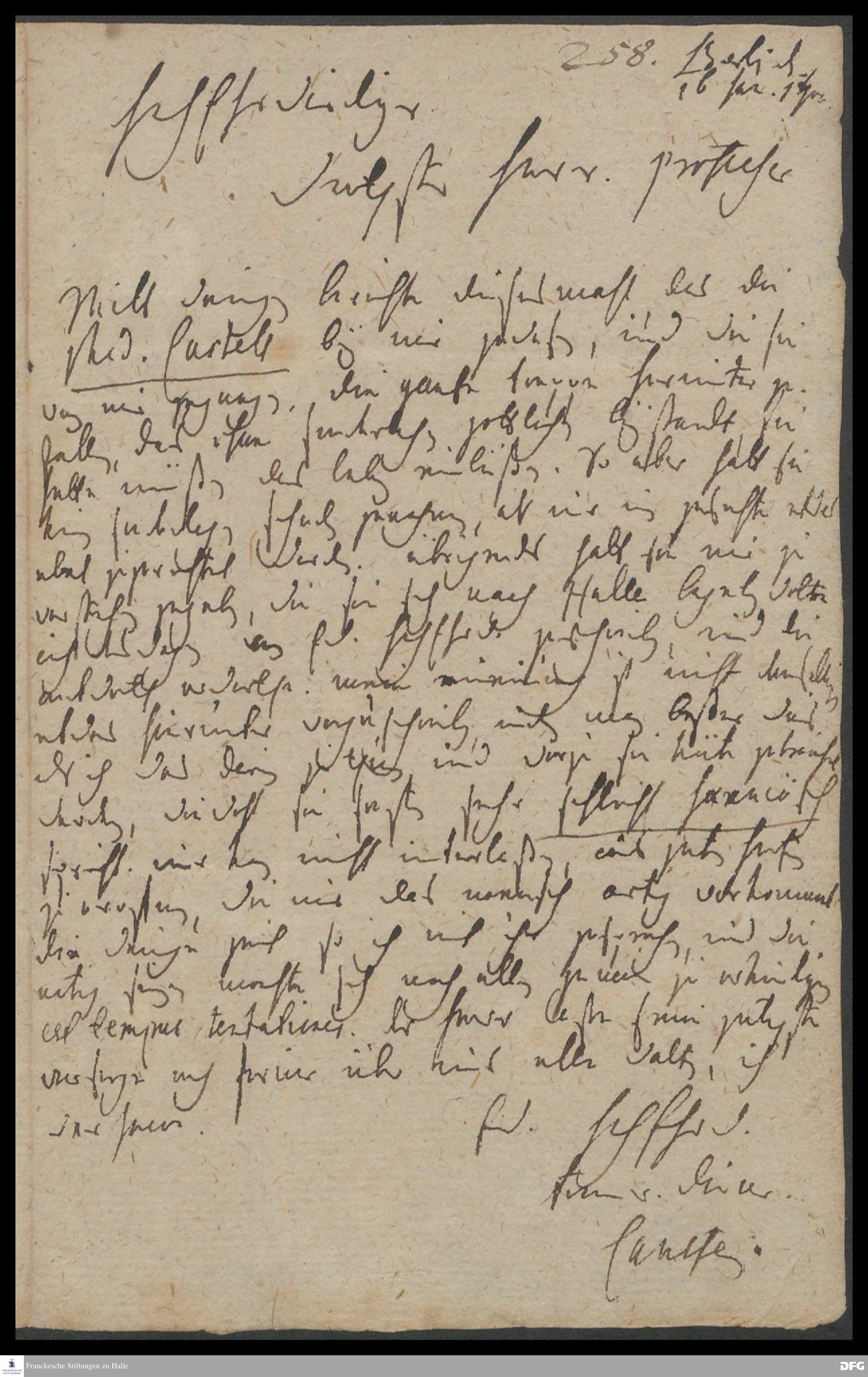 Brief von Carl Hildebrand v. Canstein an August Hermann Francke.